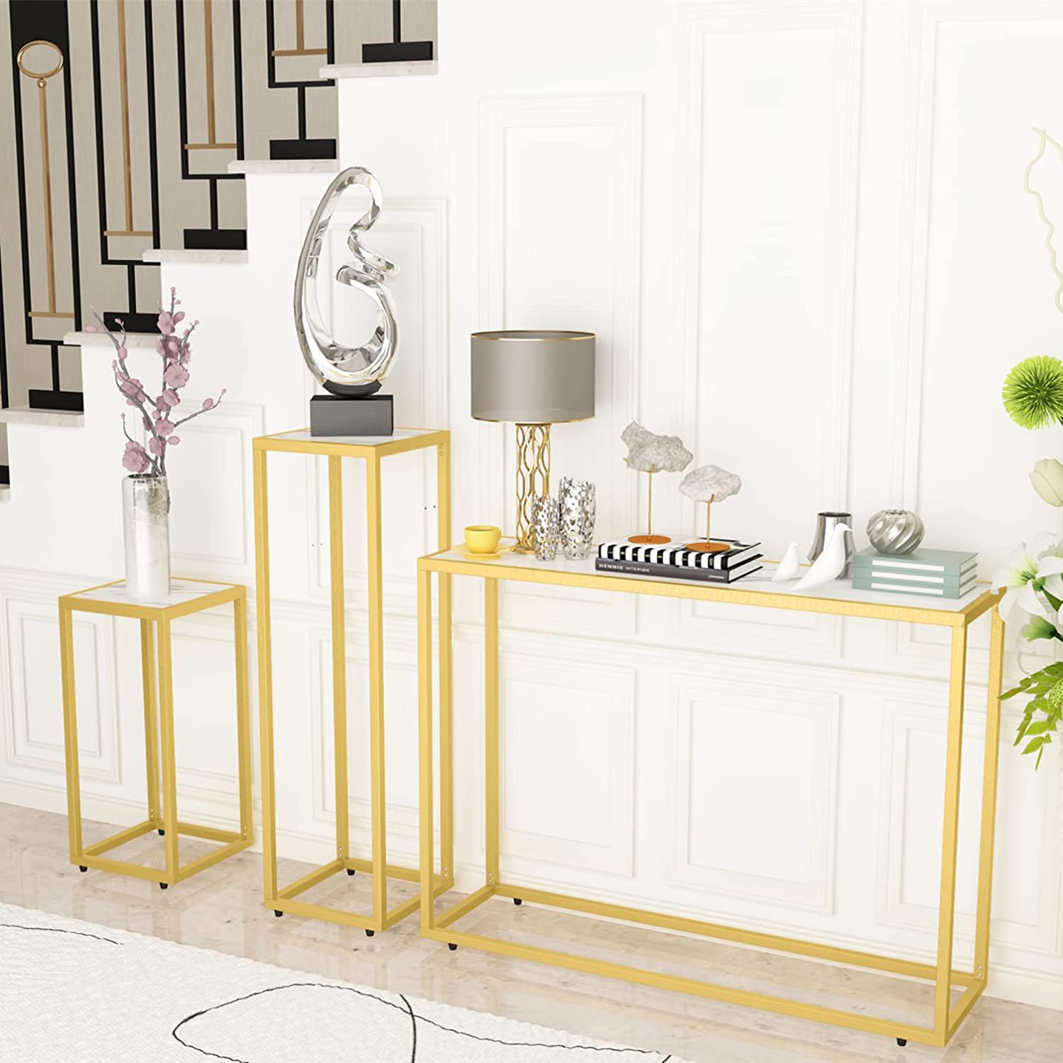 Recaceik Console Table Set for Living Room, Modern Sofa Table & Side Table with Adjustable Feet, Faux Marble Entryway Table Foyer Table for Entry, Hallway, Sofa, Corridor, Space Save & Easy Assembly