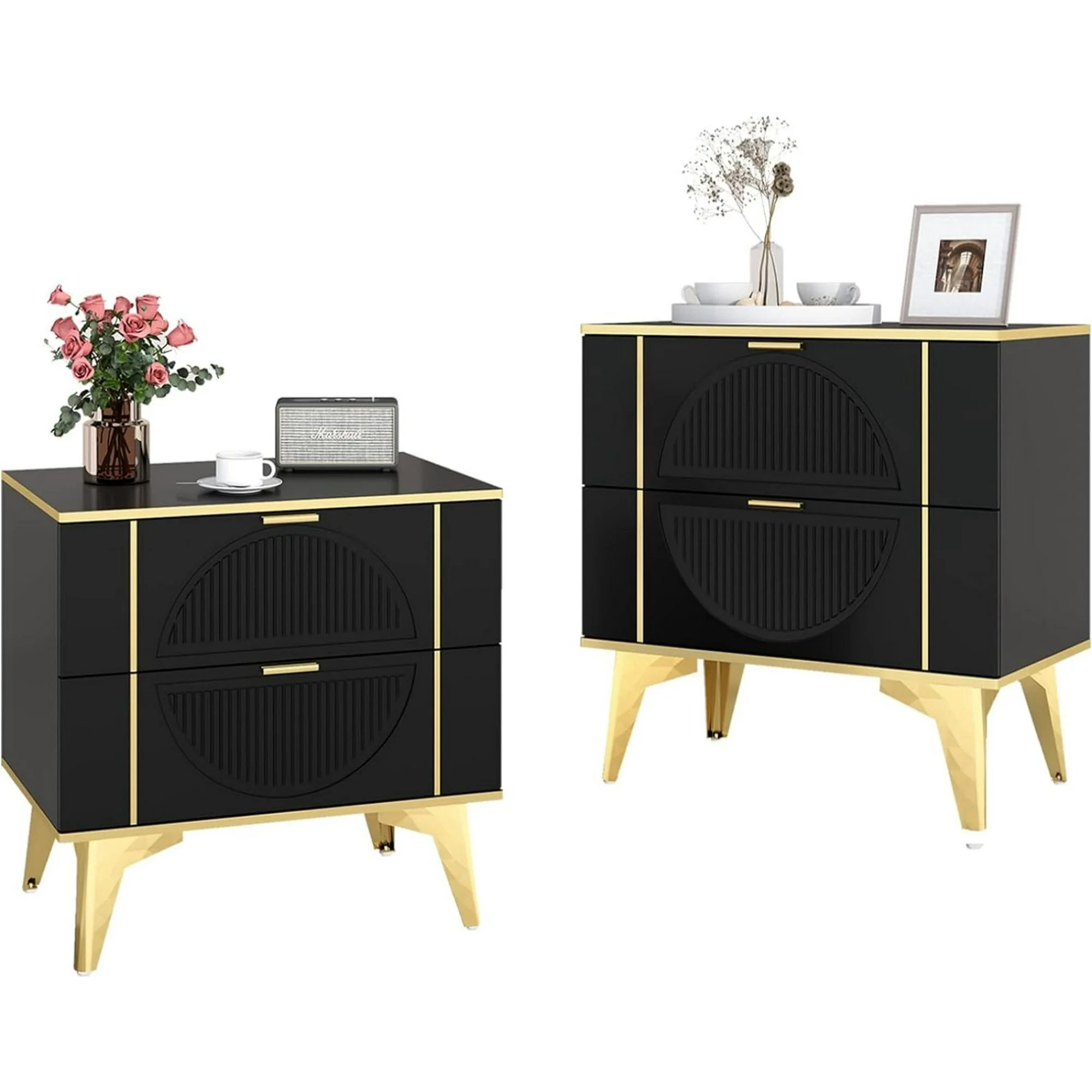 Howcool Nightstands Set of 2, End Table with 2 Drawers, Night Stand with Metal Legs, Farmhouse Sofa/Bed Side Table for Living Room, Bedroom (Black)