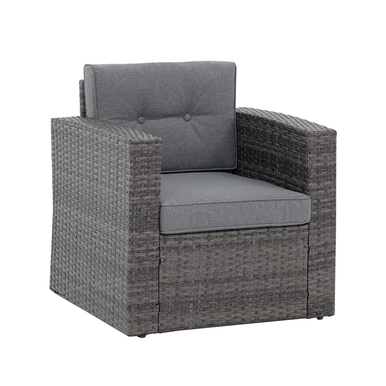 Outdoor Wicker Single Sofa, All Weather Rattan Patio Armchair Sofa with Cushions, Additional Chair for Sectional Sofa Set, Gray