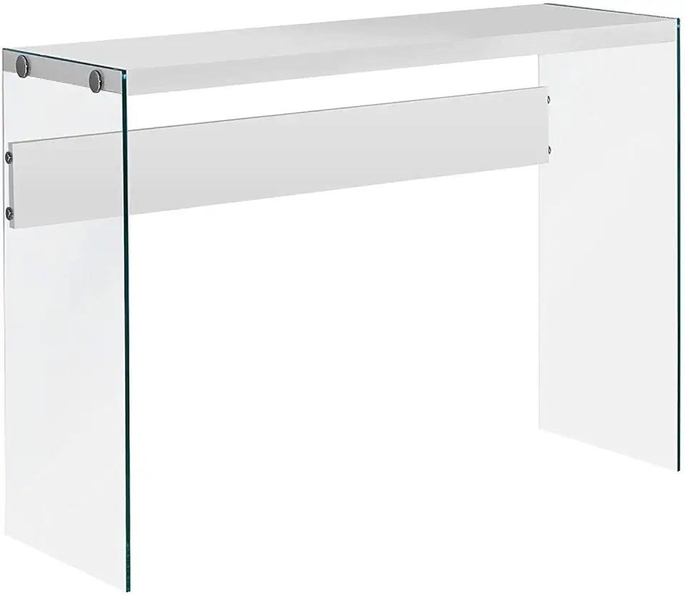 Console Sofa Table, Tempered Glass, Glossy White, 44"L