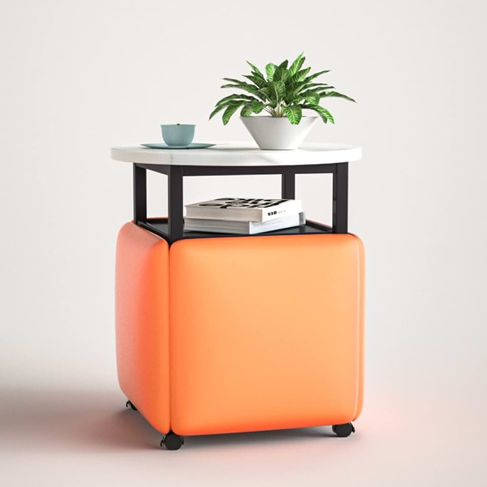 5 in 1 Cube Seating with Swivel Casters & Coffee Table,Casters Stackable Sofa Chair Stool Nesting Ottoman Stool Movable ,for Living Room, Home Office ( Color : Orange Round , Size : White desktop )