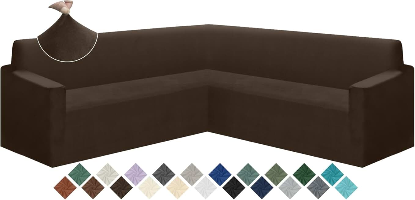 ALIECOM Velvet Corner Sectional Couch Covers L Shape Sofa Cover for Living Room Stretch Soft U Shaped Sofa Slipcover Non Slip Pets Dogs Furniture Protector with Elastic Bottom (Dark Brown,X- Large)