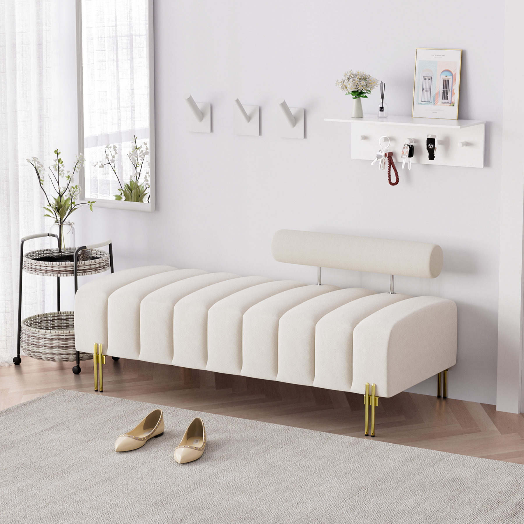 Ouyessir 52" End of Bed Bench,Modern Velvet Upholstered Ottoman Bench with Golden Metal Legs,Comfy 2 Seater Sofa Chaise Lounge for Bedroom Living Room Foyer Indoor Entryway