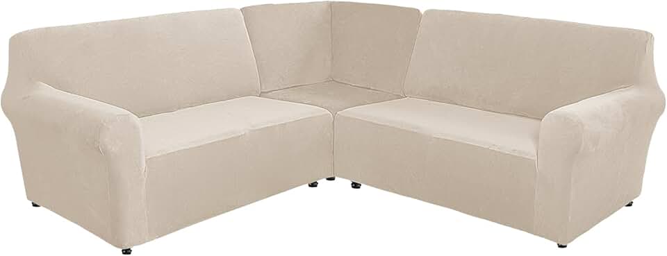 MIFXIN Sectional Corner Sofa Covers 5 Seat L-Shaped Sectional Couch Slipcovers 3 Piece Velvet Stretch Soft Washable Furniture Sofa Protector for 5-Seater Corner Sofas (Beige)