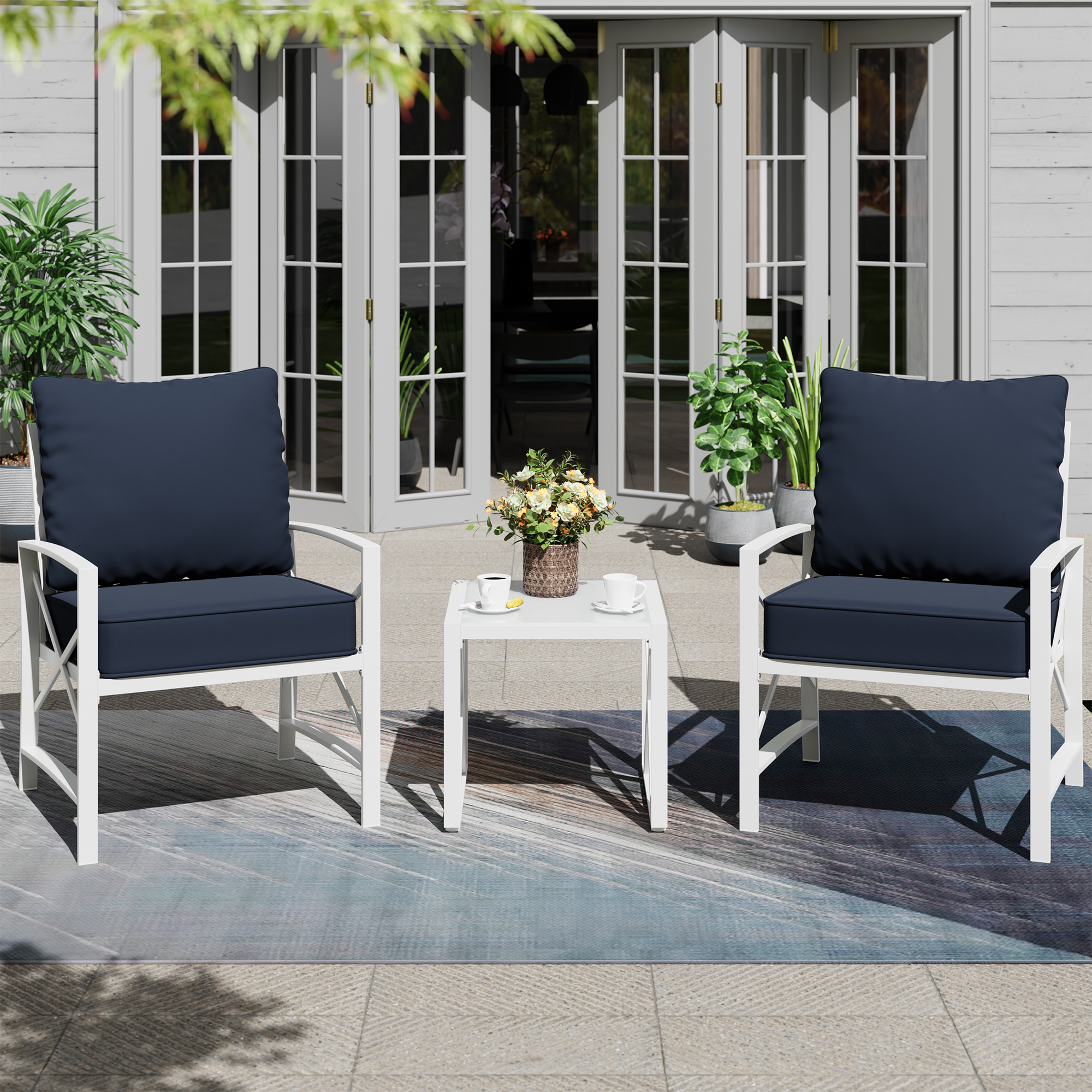 Walsunny 3-Piece Patio Furniture Set, Outdoor Conversation Furniture Set with Matching Side Table, Metal Sofa Chairs Detachable Cushions Navy Blue