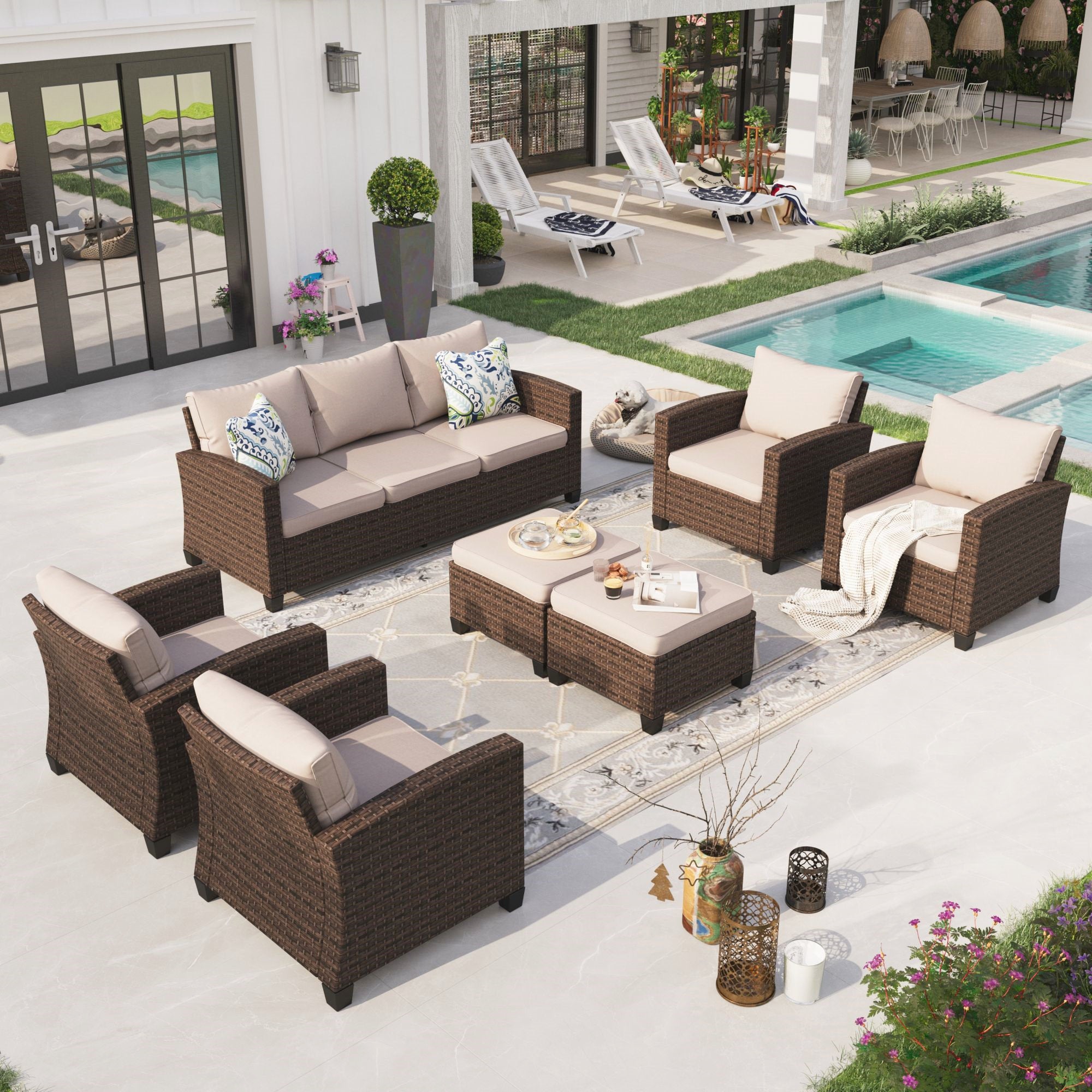 Sophia & William 9-seat Wicker Patio Conversation Set Outdoor Sectionals Sofa Set, Beige