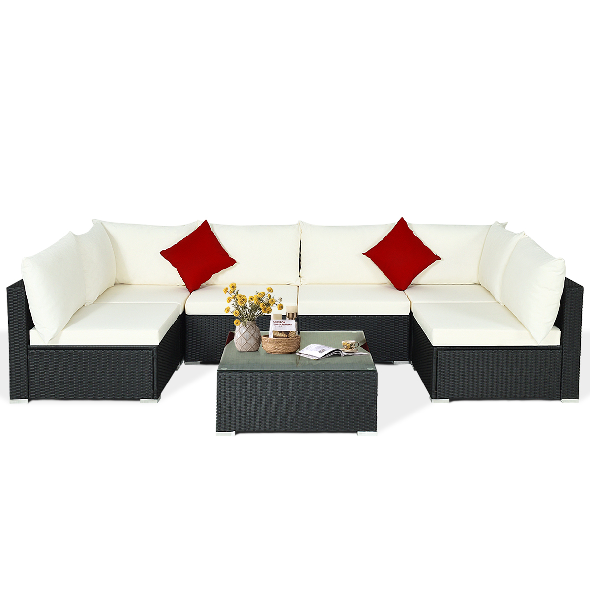 Patiojoy 7-Piece Patio PE Rattan Sectional Sofa Furniture Set Wicker Sofa Conversation Set Beige