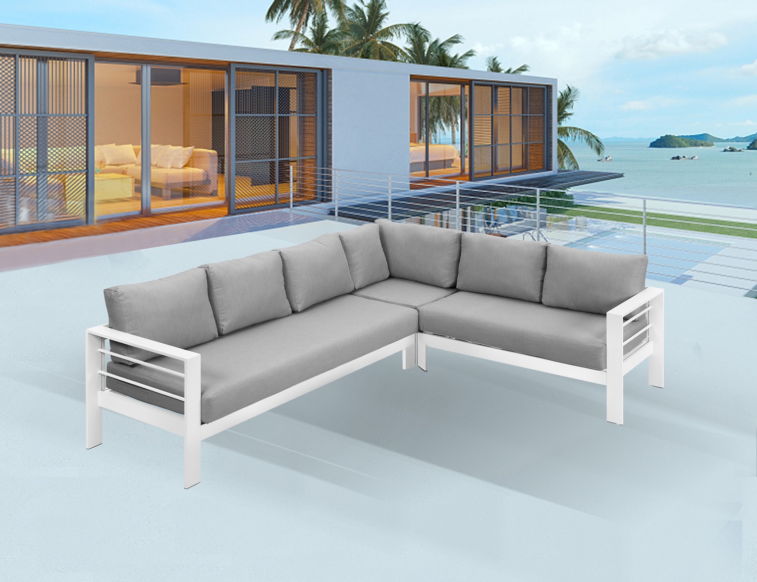 Patio Furniture Set, Outdoor Aluminum Sectional Sofa Couch - 3 Pieces All-Weather Metal Conversation Set Corner Sofas,White