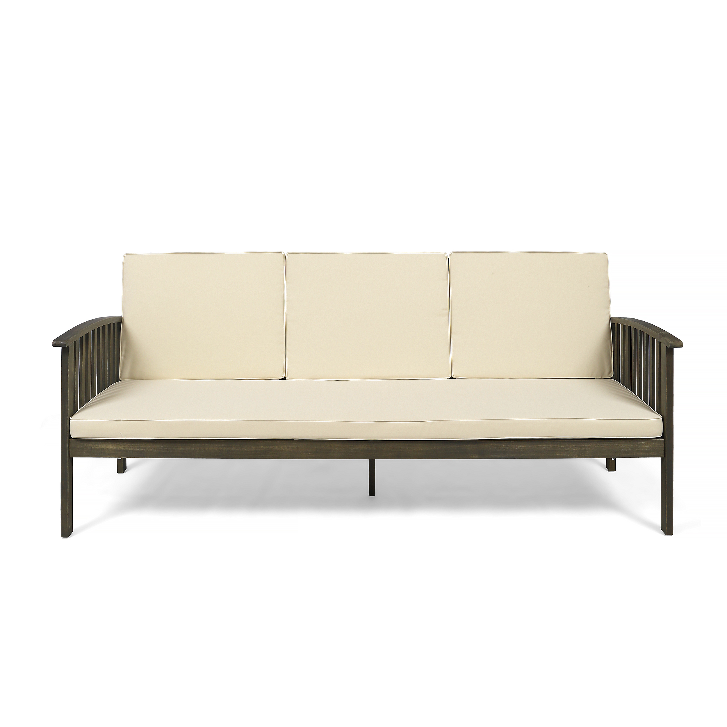 Brendon Outdoor Acacia Wood Sofa with Cushions, Gray, Cream