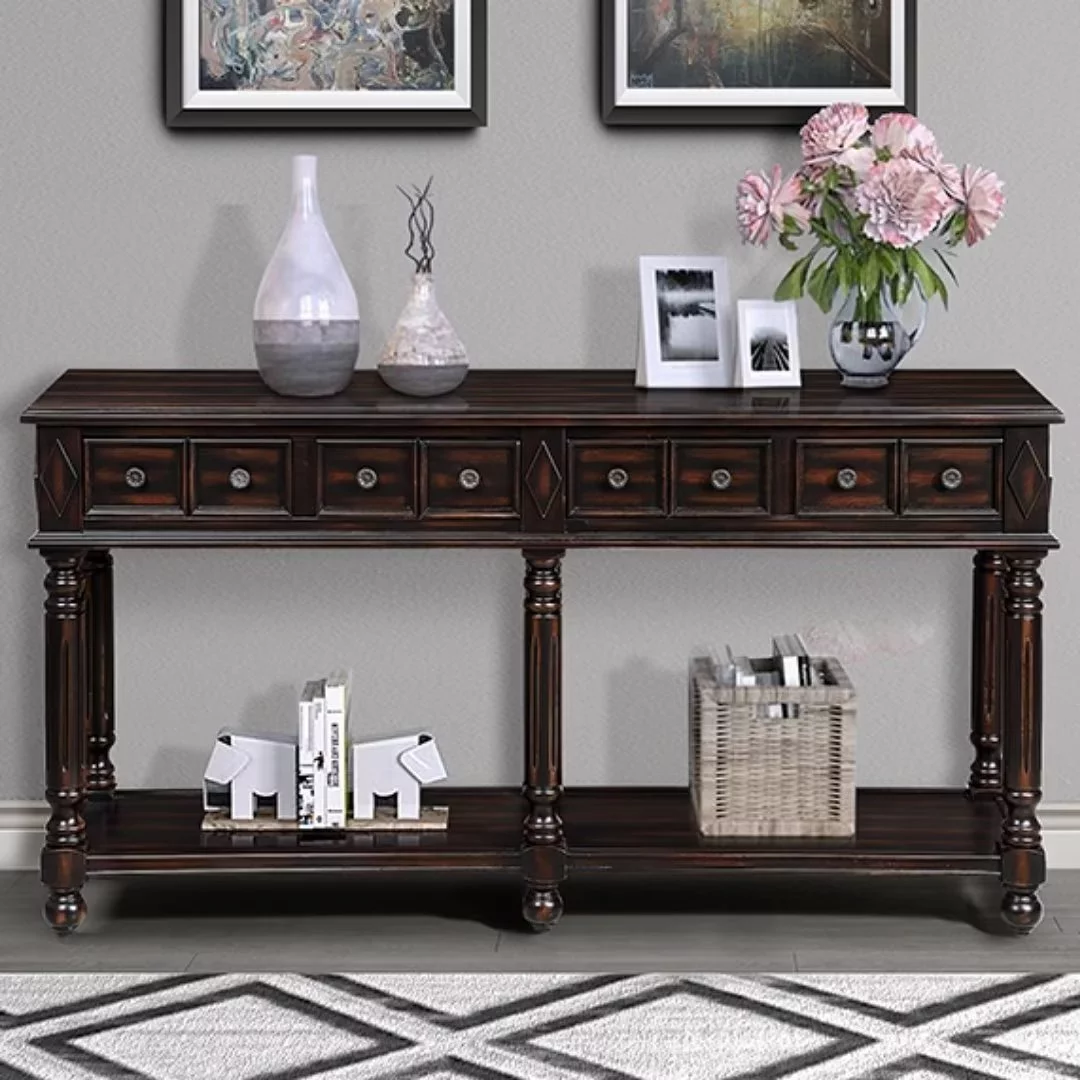 Litake 62.2'' Console Table with 4 Drawers 2 Shelves Modern Console Table Sturdy Stable Entryway Sofa Table Coffee Bar Cabinet Easy To Assemble for Living Room Hallway Bedroom Dining Room