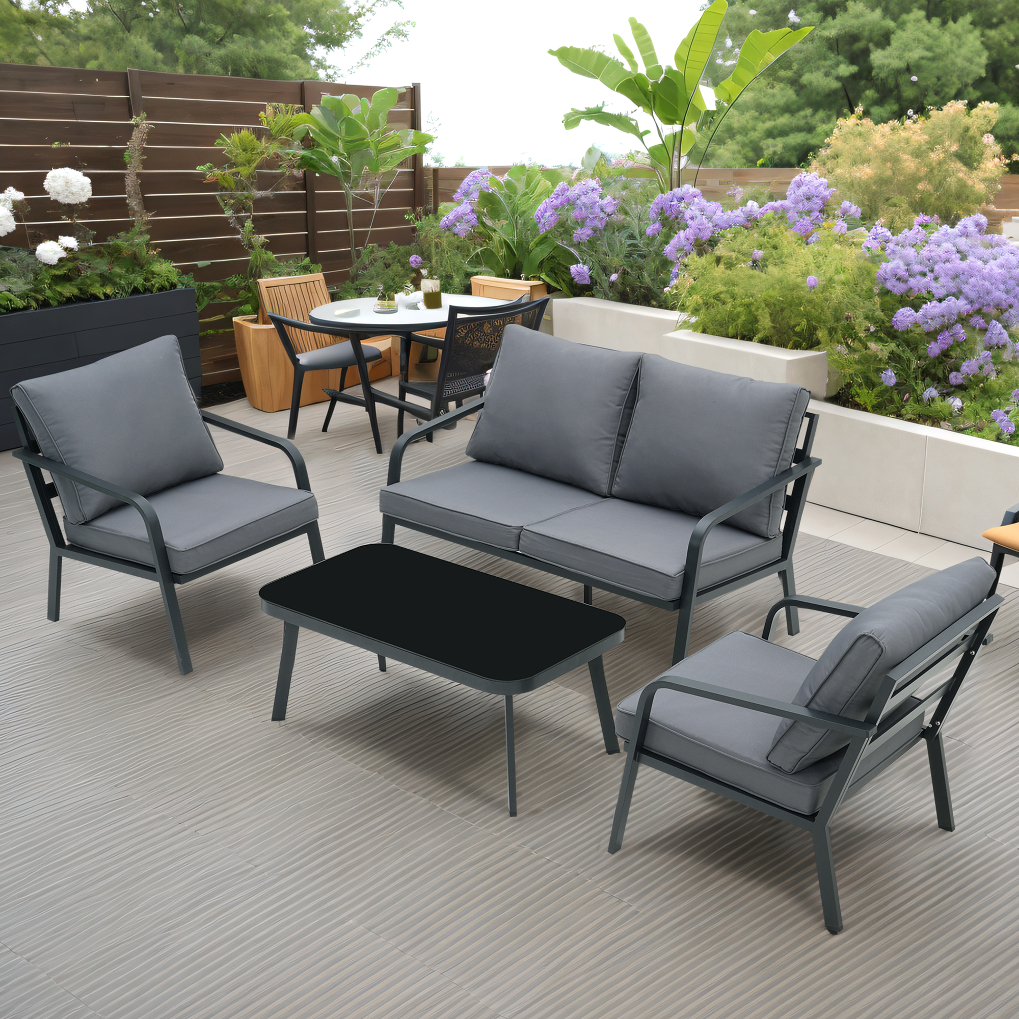 Ainfox Aluminum Patio Outdoor Furniture Set, 4 Pieces Morden Metal Seating Conversation Sectional Sofa, for Balcony, Front Porch, Apartment, Sunroom, Sun Villa and More, Grey