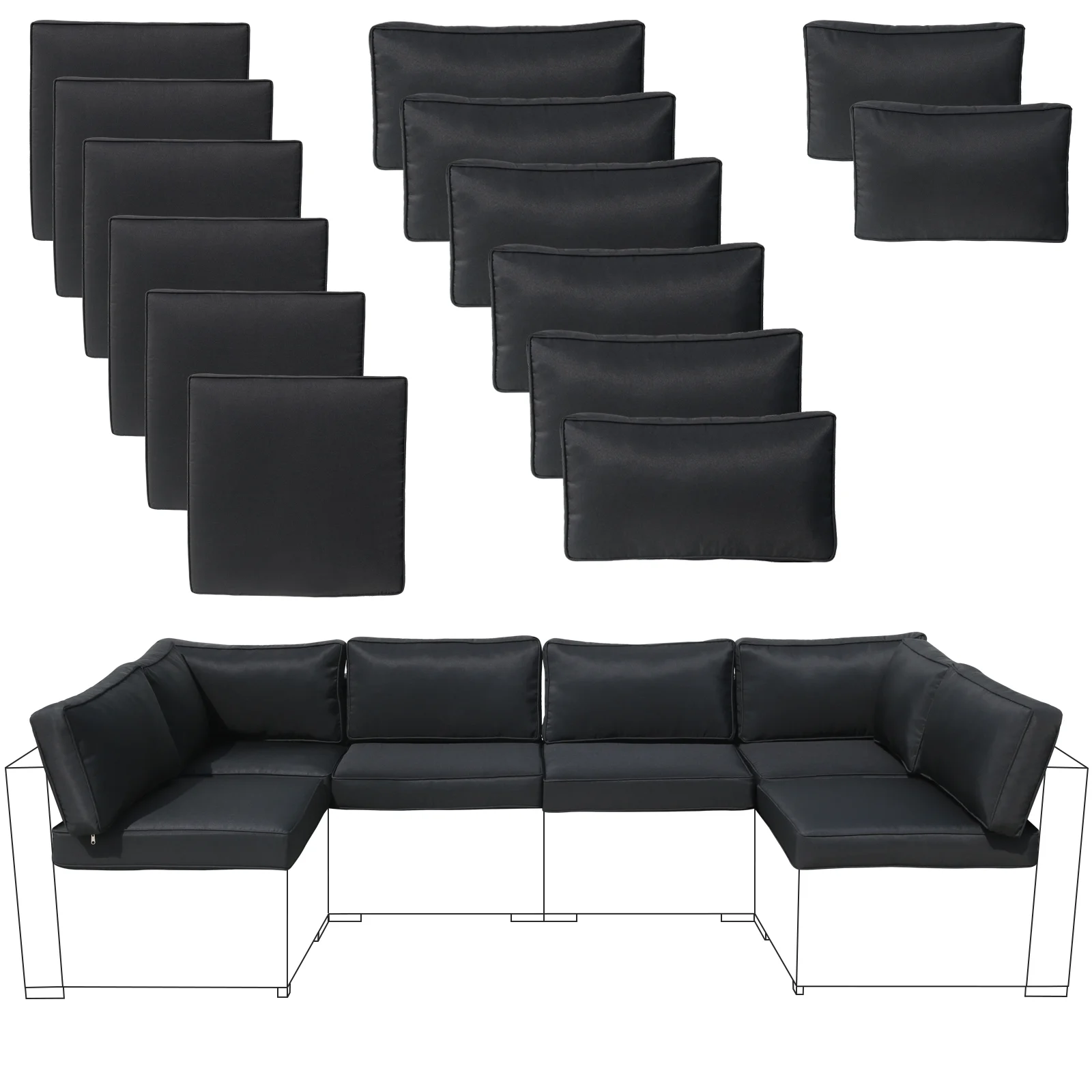 FKSLIFE Patio Furniture Replacement Cushions Outdoor Sectional Ratten Conversation Set Water-Resistant Sofa Cushions Liner and Cover Black 14 Piece