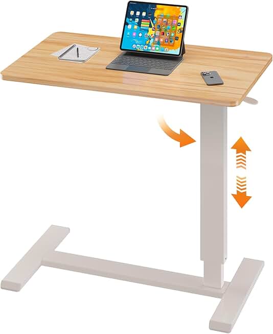 Folding Overbed Bedside Table with Wheels, Adjustable Height Medical Table, Large Rolling Mobile Laptop Table, Folded Down for Storage, Hospital Home Sofa(31.5" W x 15.7" D, Wood)