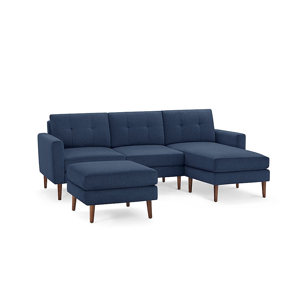 Burrow - Mid-Century Nomad Sofa Sectional with Ottoman - Navy Blue