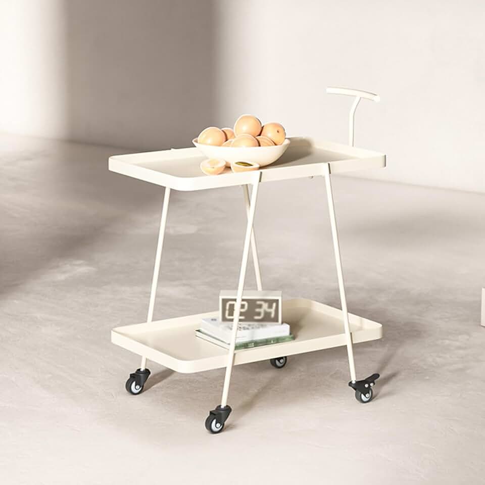 Side Table with Wheels, Table with Storage Shelves, Next to Sofa Couch Bed Cart, TV Tray Table, for Sofa Kitchen Living Room and Bedroom, Easy Assembly(White)