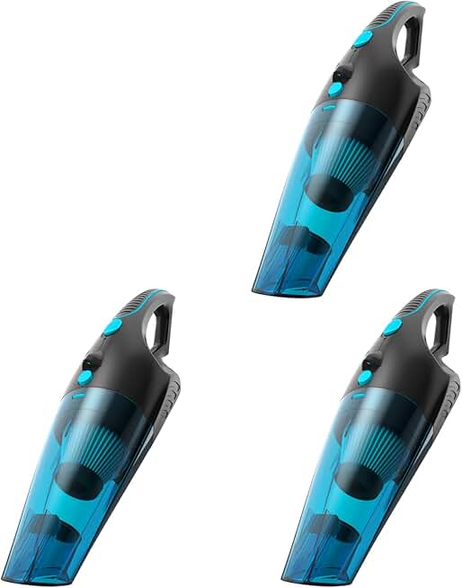 GV02 Cordless Handheld Vacuum Cleaner with 10K PA Suction Power, Ideal for Cleaning Curtains, Carpets, Sofas, Staircase Corners, Bed Dust, Skin Flakes, and Pet Hair(Blue 3 Pack)