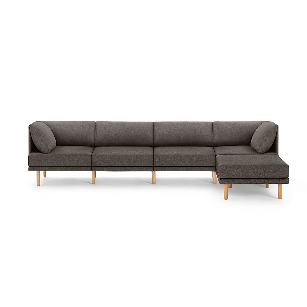 Burrow - Contemporary Range 4-Seat Sofa with Attachable Ottoman - Heather Charcoal