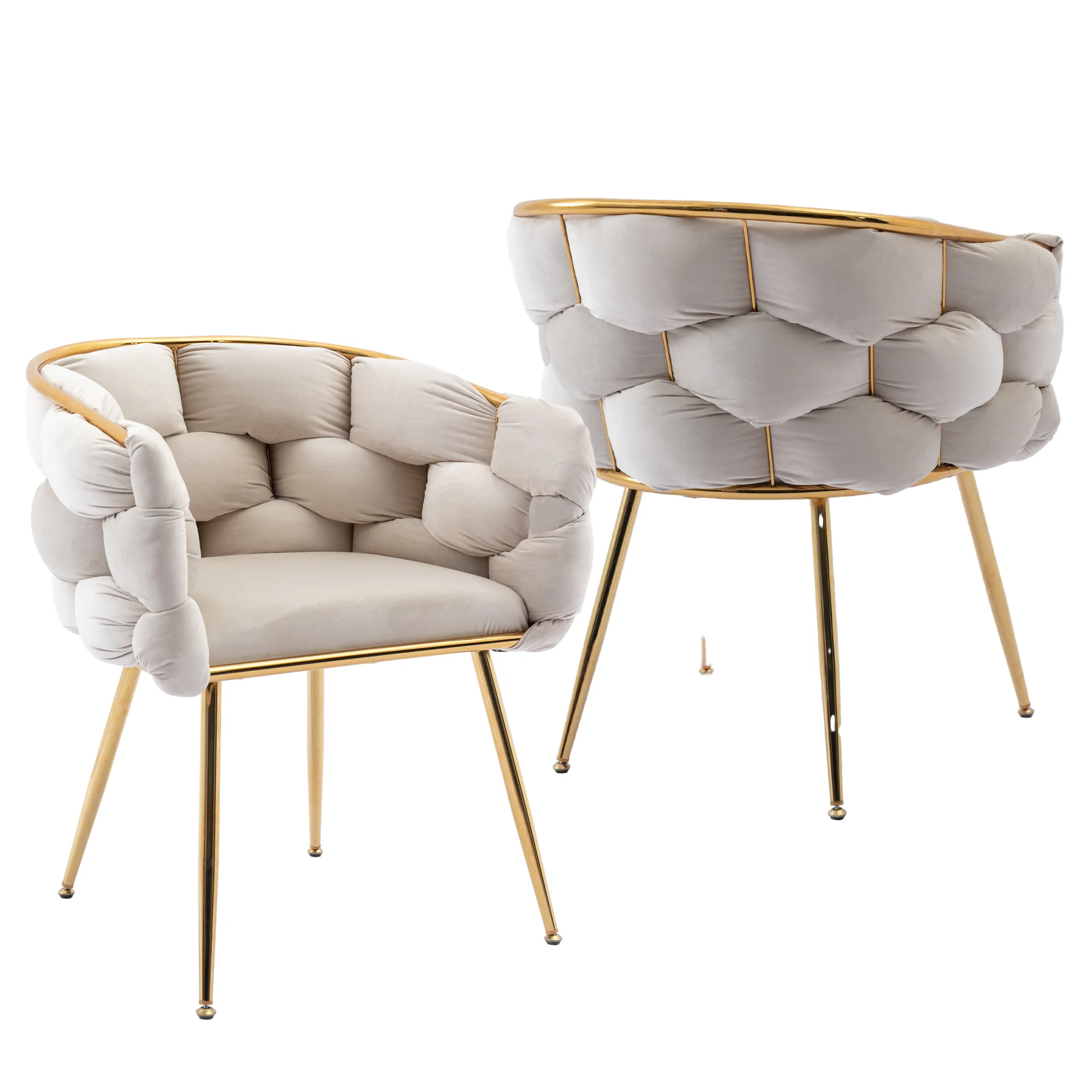 Luxury Velvet Single Sofa Chair, Modern Dining Chair with Golden Metal Legs, Upholstered Dining Chairs, Accent Desk Chair for Dining Room, Kitchen, Vanity, Living Room(Beige,Set of 2)