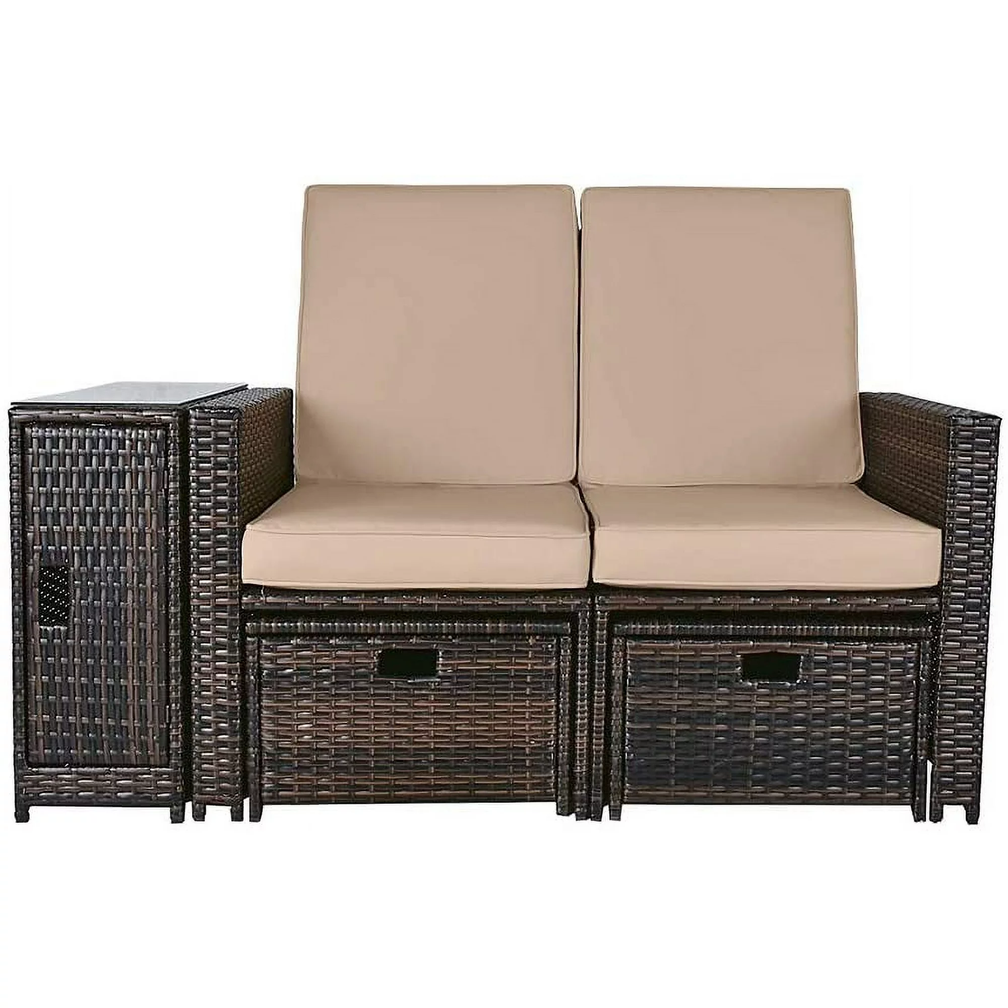 LVUYOYO 5pcs Patio Wicker Loveseat - Outdoor Rattan Sofa Set with Cushion and Ottoman Footrestfor Garden