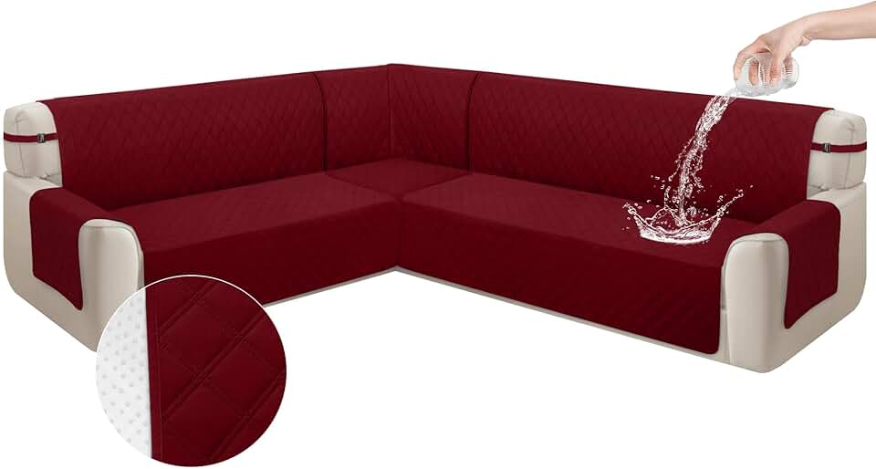 Arfntevss Corner Sectional Couch Covers L Shape Waterproof Sofa Cover Set Universal Quilted Slipcover Set 5 Piece U Shaped Non Slip Couch Cover Living Room Furniture Protector (Wine Red, X-Large)