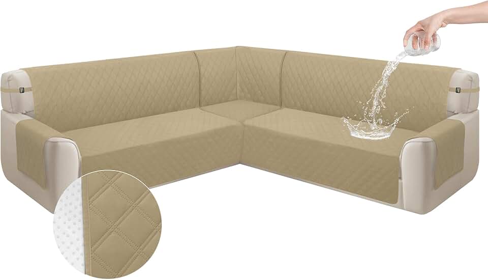 Arfntevss Corner Sectional Couch Covers L Shape Waterproof Sofa Cover Set Universal Quilted Slipcover Set 5 Piece U Shaped Non Slip Couch Cover Living Room Furniture Protector (Tan, Large)