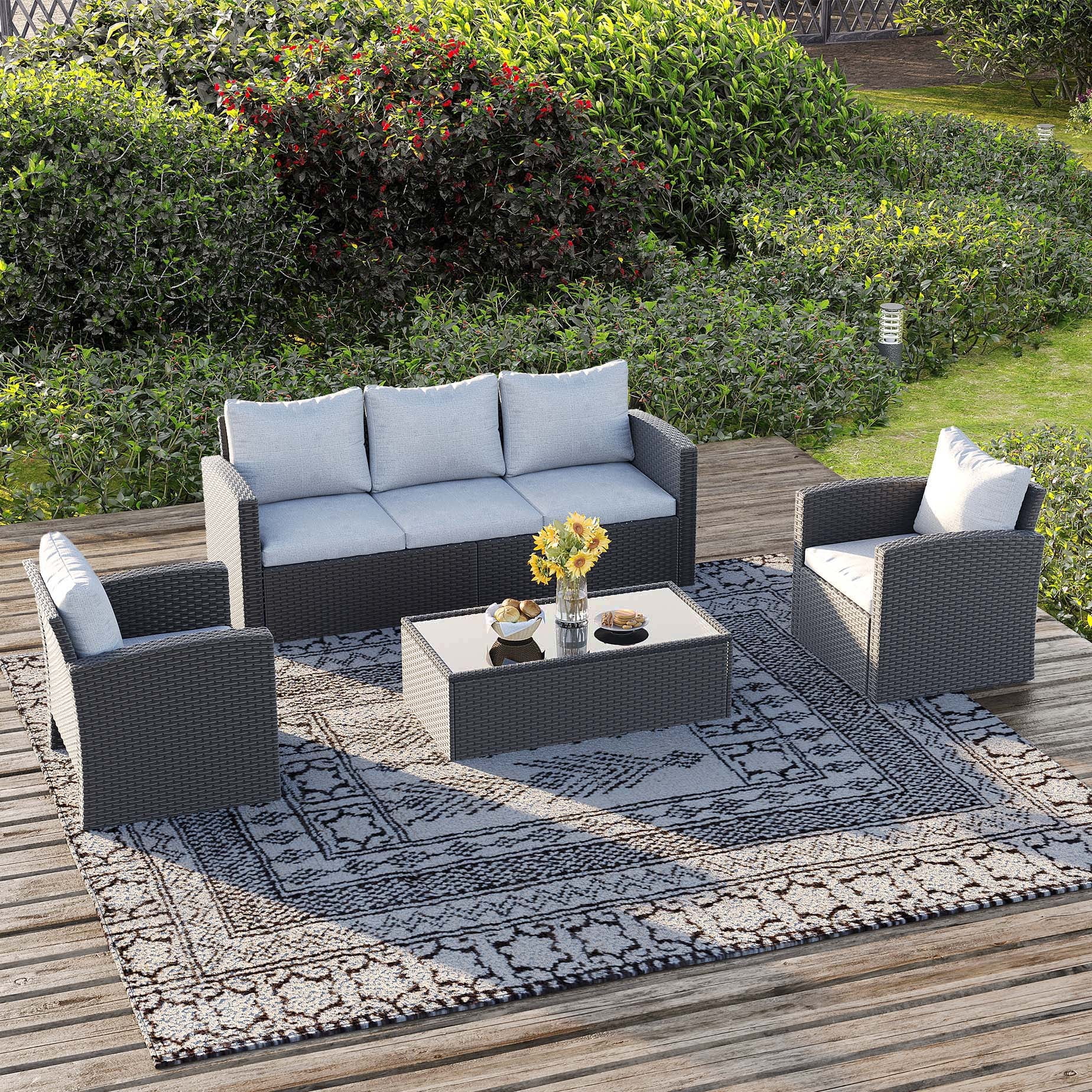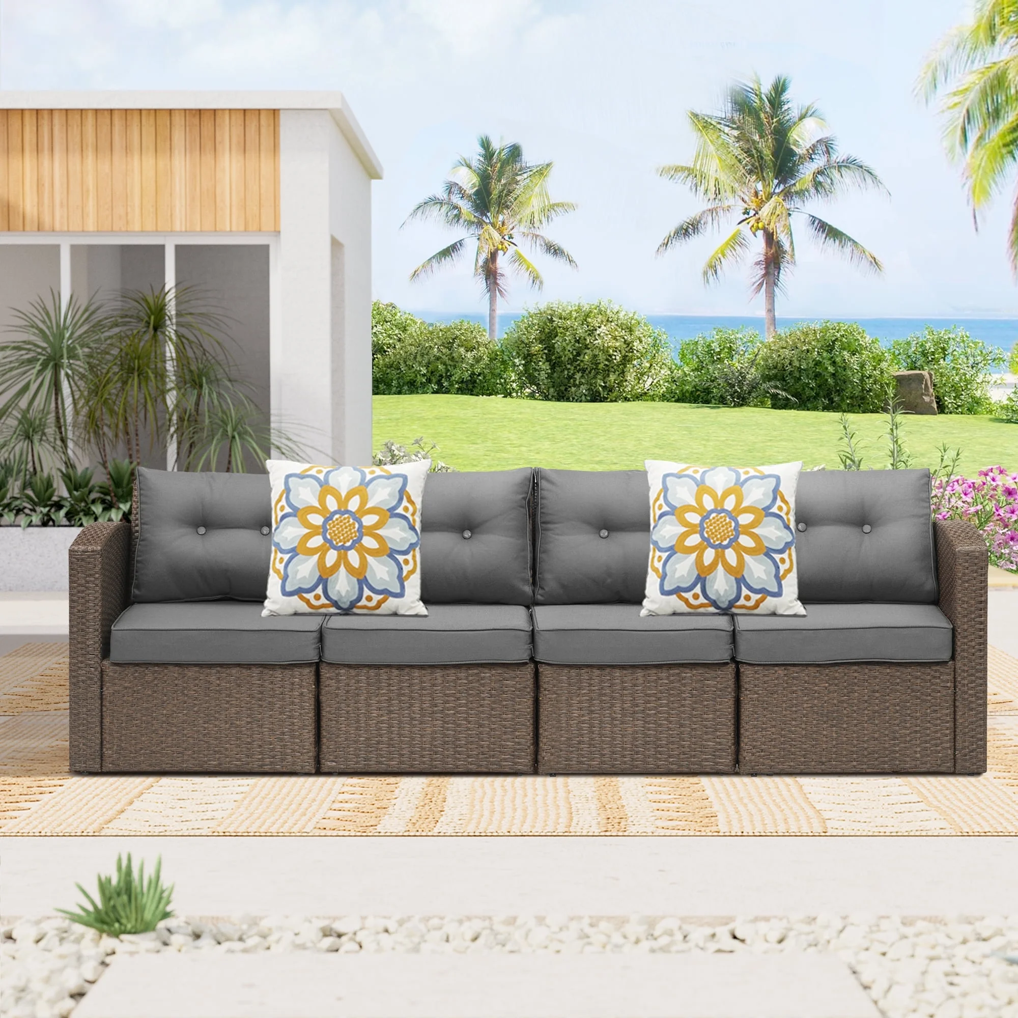 Royalcraft 4 Pieces PE Brown Wicker Outdoor Furniture,Patio Sofa Sets Outdoor Rattan Conversation Furniture Set and Grey Cushions