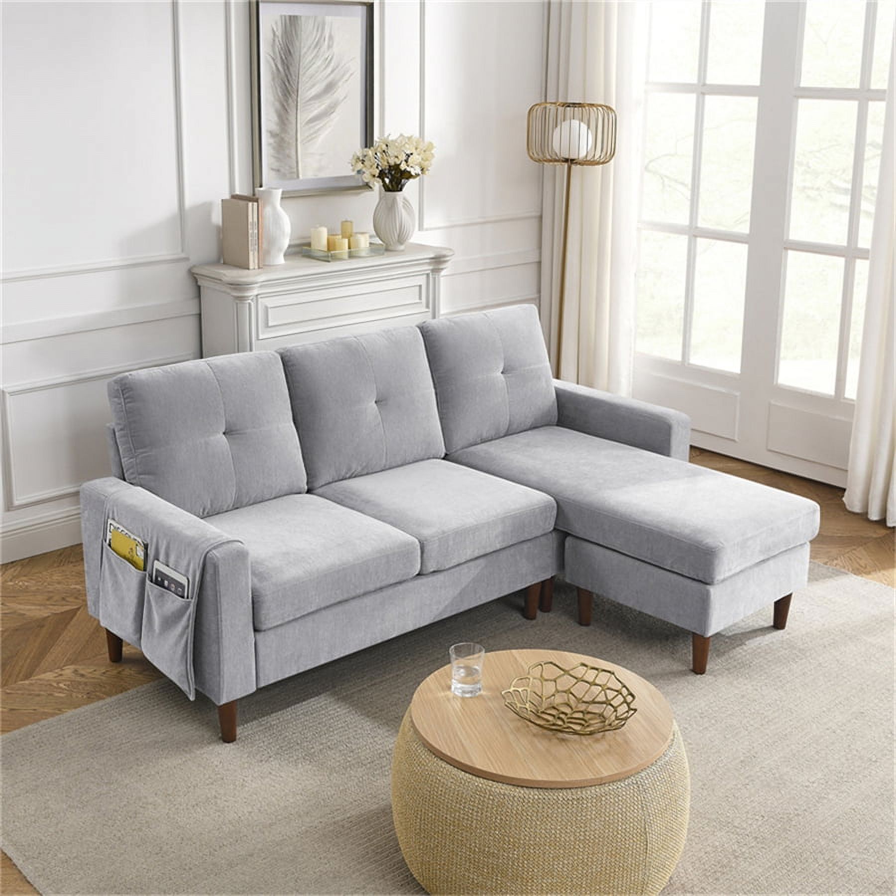 80" L-Shape Chenille Convertible Sectional Sofa Couch with Pocket and Rubber Wood Legs, 3 Seat Sofa with Removable Ottoman and Cushions, Perfect for Living Room, Aapartment, Small Space, Light Gray