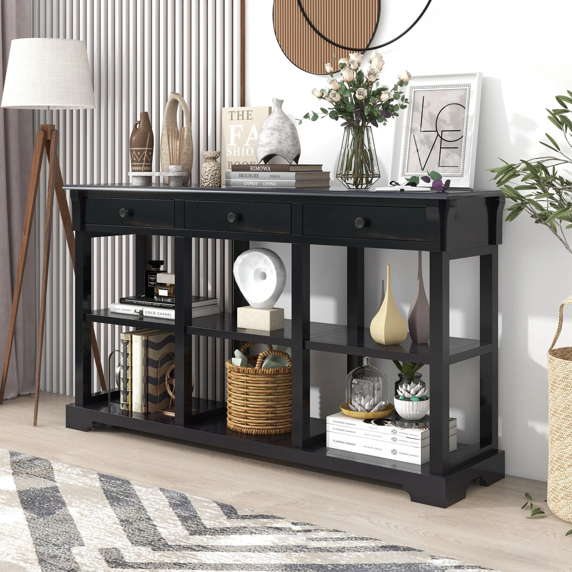 Ktaxon Wooden 3-Shelf Console Table, Sofa Table, Kitchen Buffet Sideboard with 3-Drawers for Entryway, Living Room, Bedroom, Home, Black