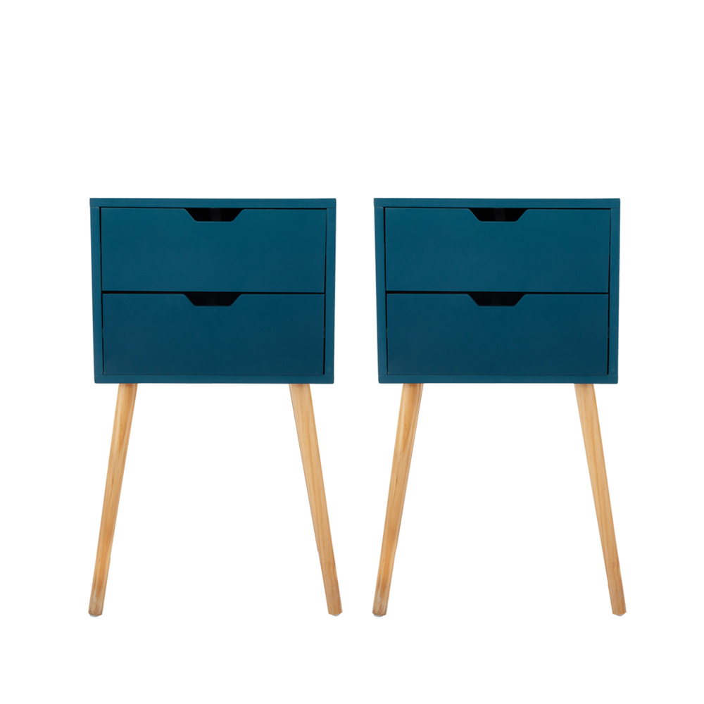 Set of 2 Nightstand with 2 Drawers, Mid Century Wood Bedside Table for Bedrooms Living Rooms, Sofa Side End Table, Blue