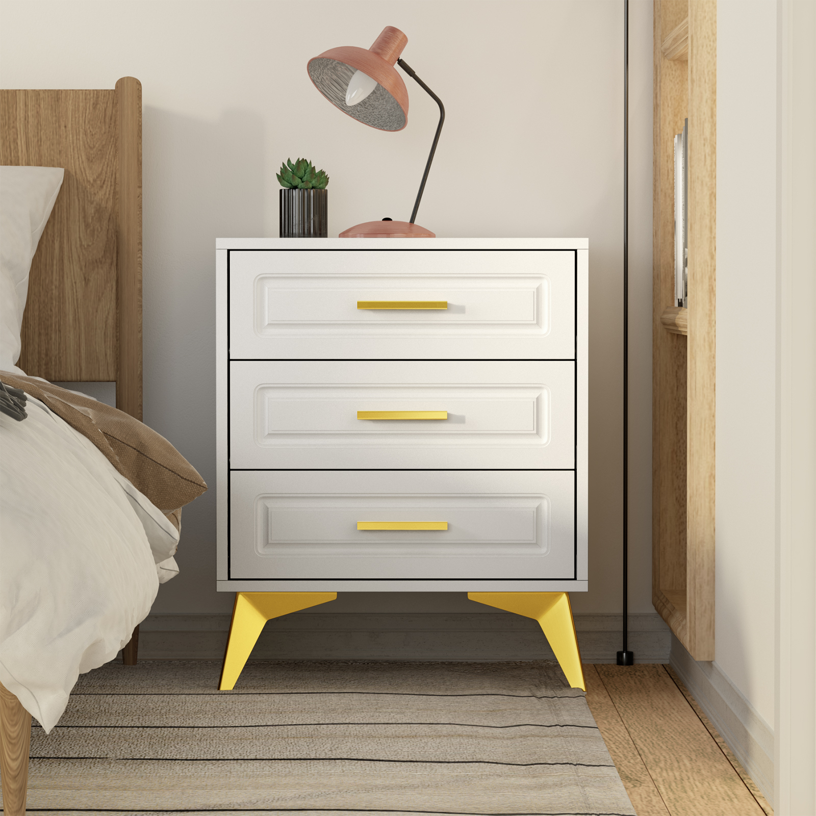 Eumyviv 3-Drawer White Nighstands with Gold Handles Modern Bedside Table Sofa Side Table , White H0079