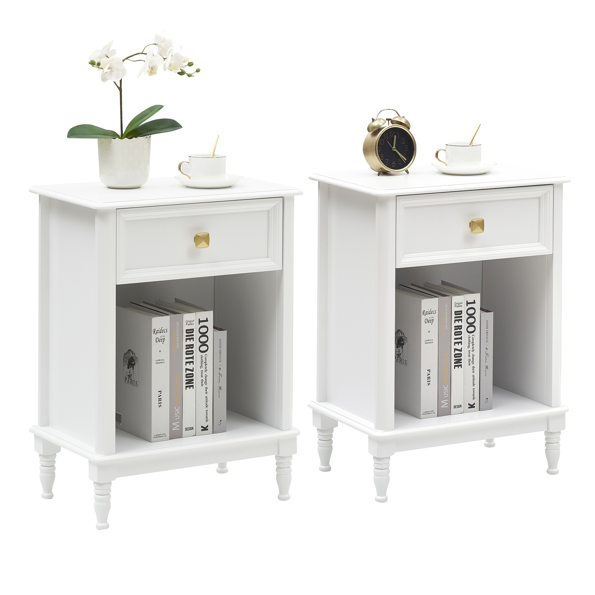 White Night Stand Set 2, Bedside Table End Table with Drawer and Storage Shelf, Wood Nightstand for Bedroom Office Living Room Sofa, Easy Assembly (White-2 Pack)