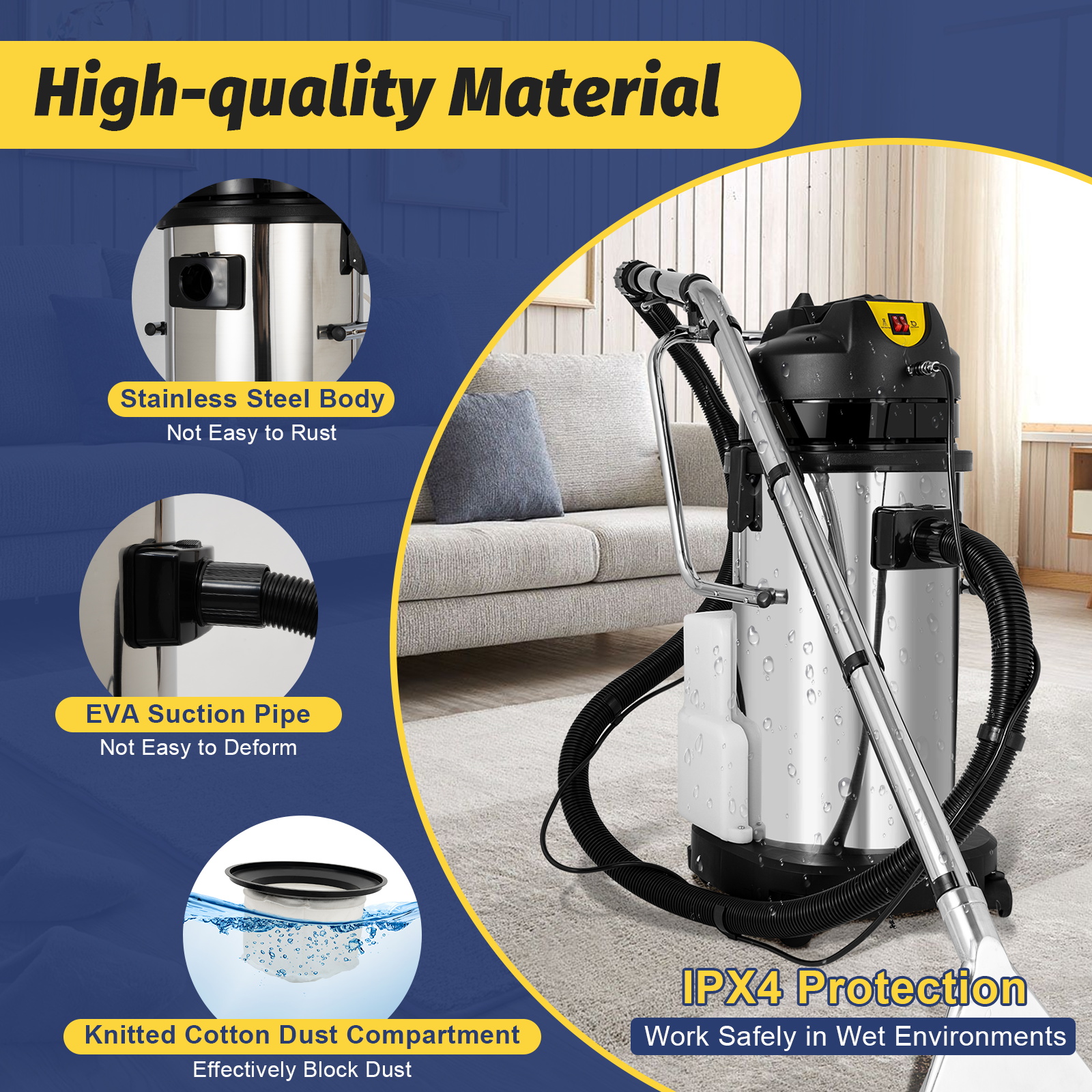Miumaeov Carpet Cleaner 110V 40L Commercial Upholstery Cleaner Machine 3-in-1 Portable Wet Dry Sofa Curtain Fabric Dust Cleaner with Long Flat/Dry/Water Vacuum Head and Round Brush
