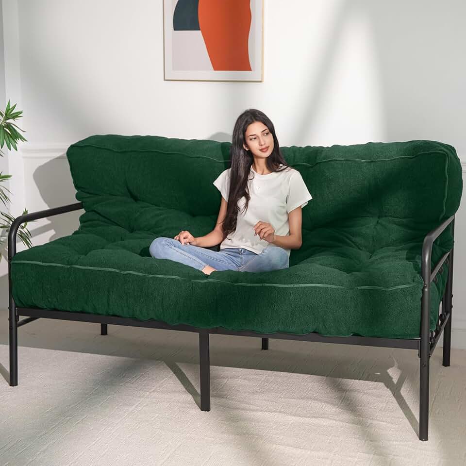 MAXYOYO 8" Futon Mattress Queen Size, Ultra Thick Boucle Futons Sofa Couch Bed Sleeper Sofa Bed Floor Mattress for Adults, Shredded Foam Filling (Frame Not Included), Green