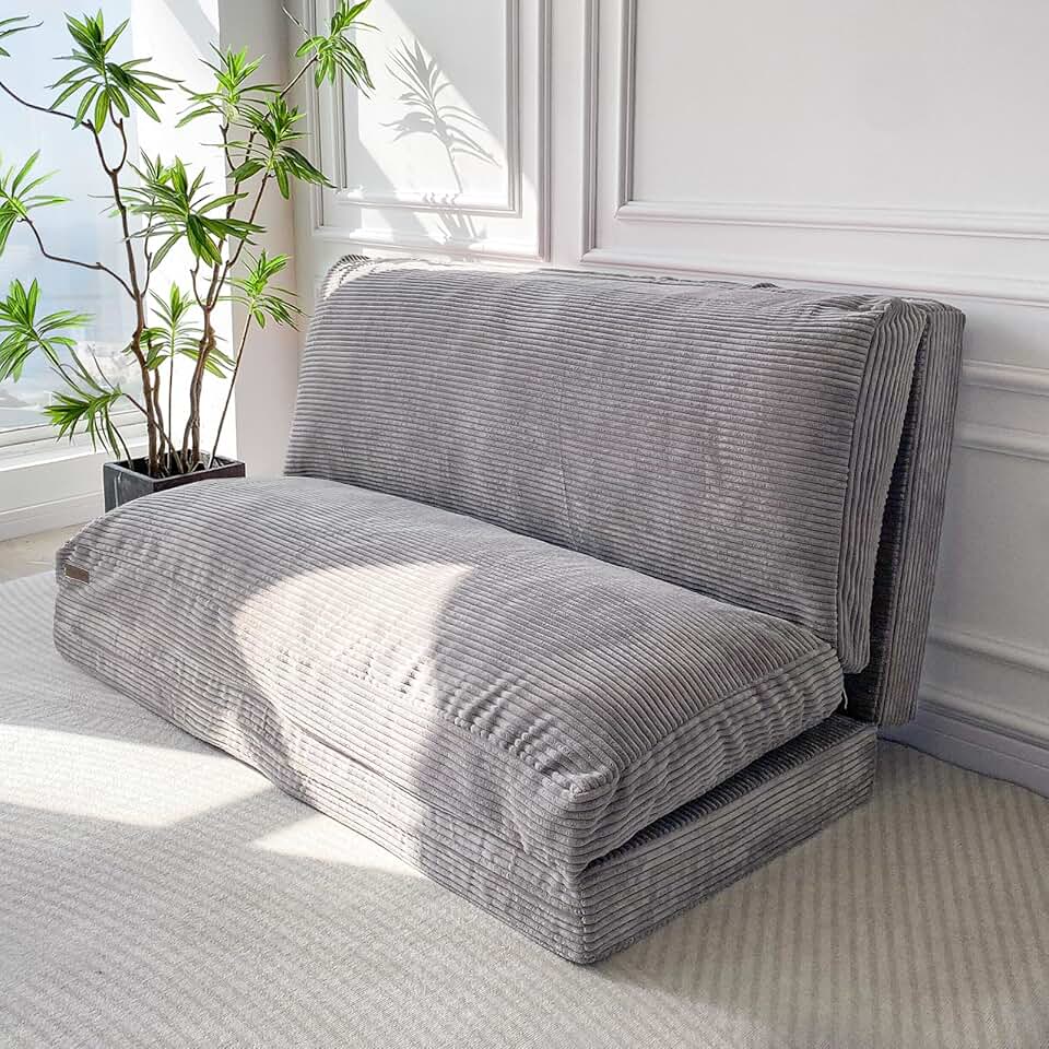MAXYOYO Bean Bag Bed Folding Sofa Bed Floor Mattress for Adults, Extra Thick and Long Floor Sofa with Corded Washable Cover, Grey, 54x95 Inch
