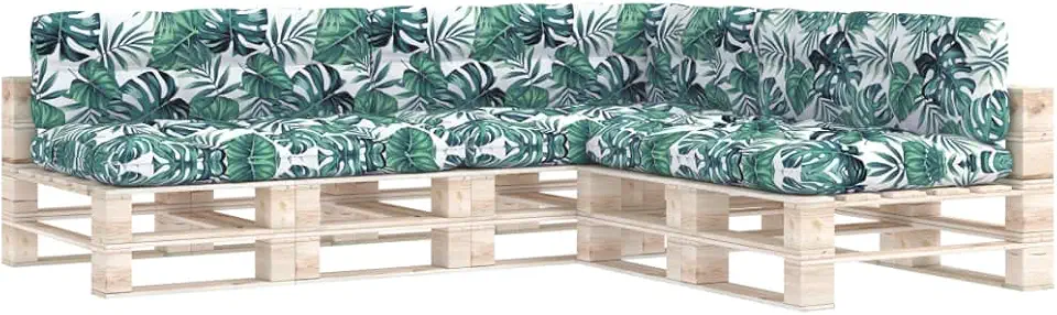 vidaXL Pallet Sofa Cushions - 7 Piece Set Vibrant Leaf Pattern, Durable 100% Polyester Material, Outdoor and Indoor, Complete Garden Sofa Cushion Set