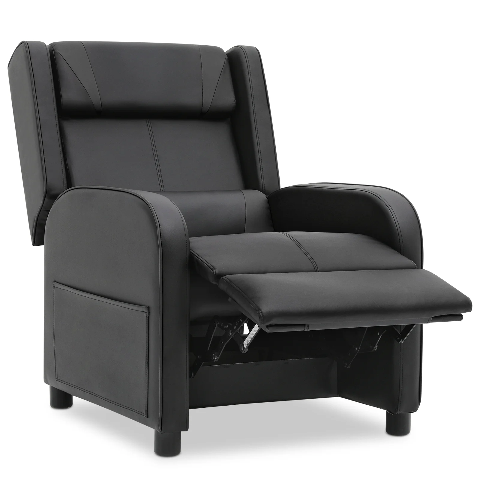 MoNiBloom Gaming Recliner Chair, PU Leather Adjustable Reclining Gaming Chair Sofa with Footrest, Lumbar Support and Headrest for Living Room Home Theater, Black