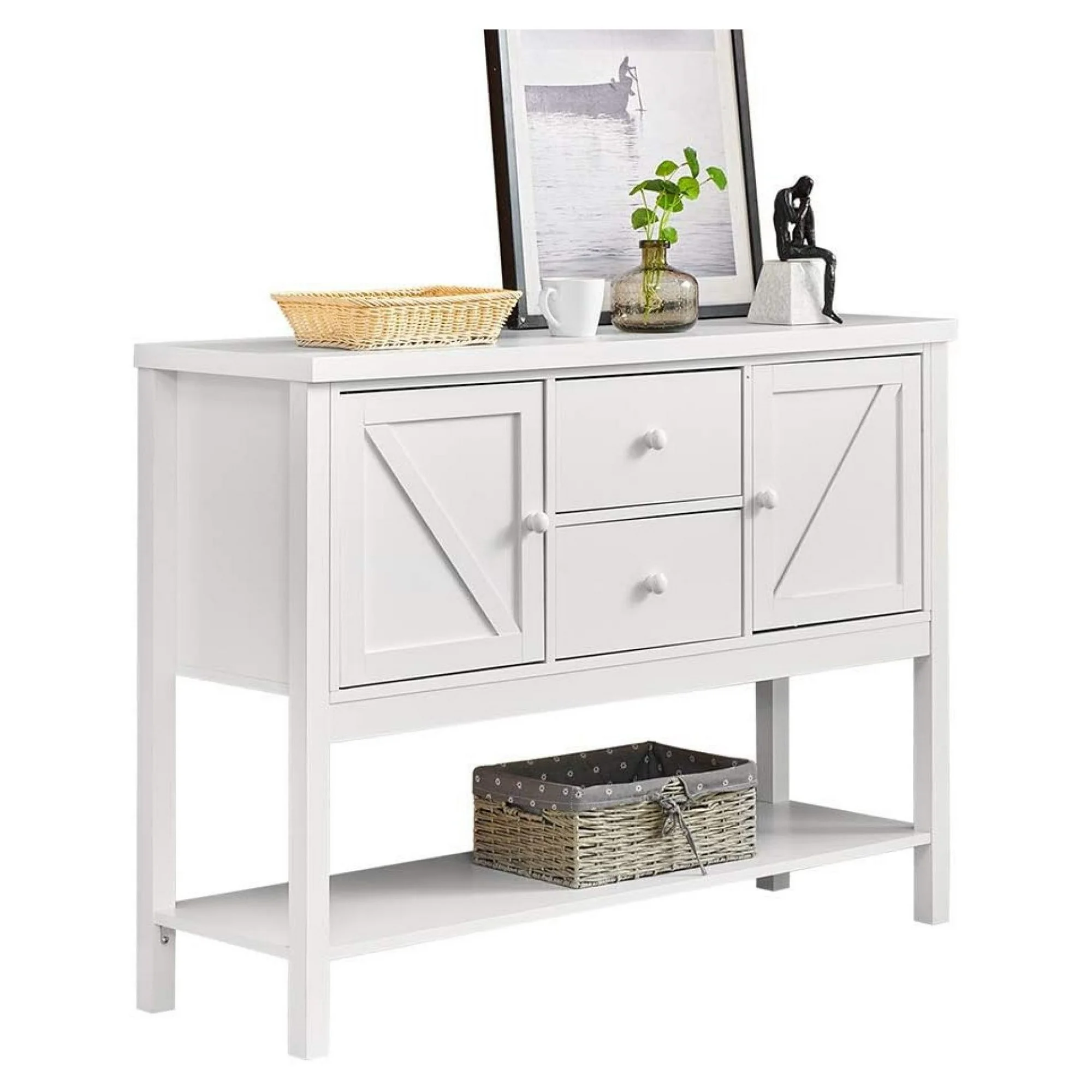Modern Living Room Console Table White Door Designed with Drawers and Storage Shelf for Entryway Hallway, Wooden Decor Entry Table Long Sofa Side Table 47inches for Home Porch