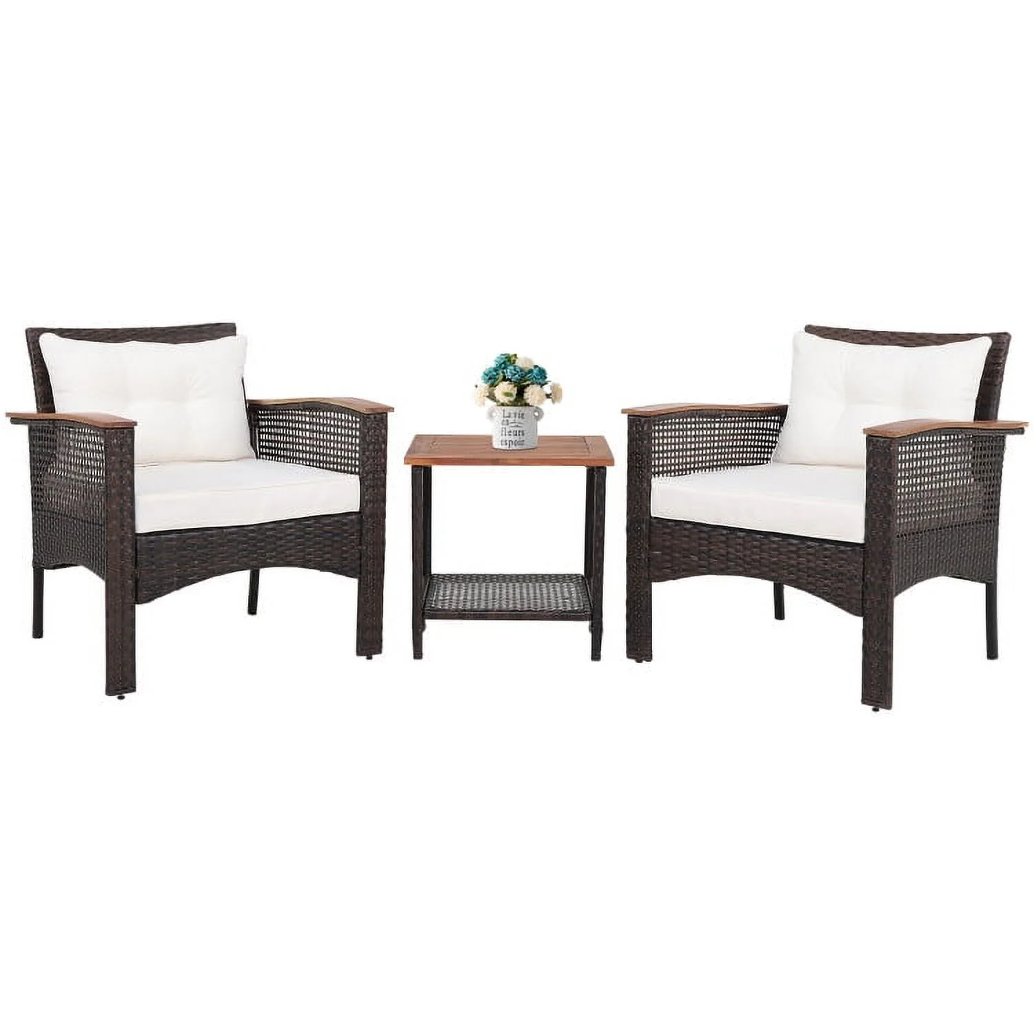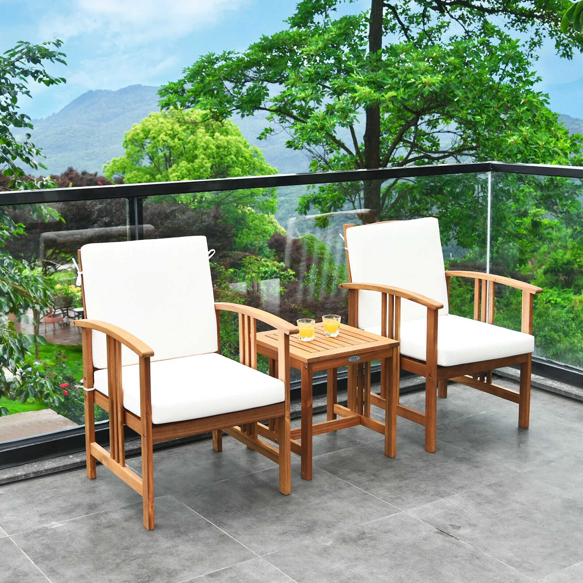 Gymax 3PC Outdoor Patio Sofa Furniture Set Solid Wood Cushioned Conversation Set White