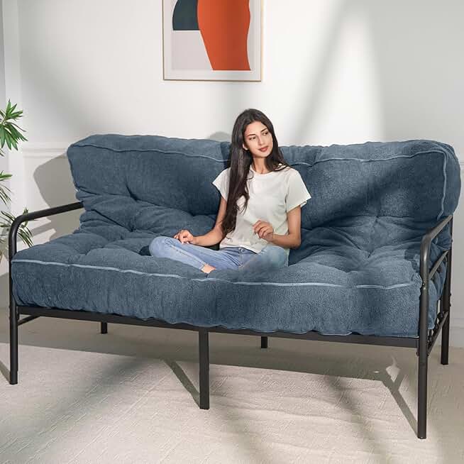 MAXYOYO 8" Futon Mattress Queen Size, Ultra Thick Boucle Futons Sofa Couch Bed Sleeper Sofa Bed Floor Mattress for Adults, Shredded Foam Filling (Frame Not Included), Dustyblue