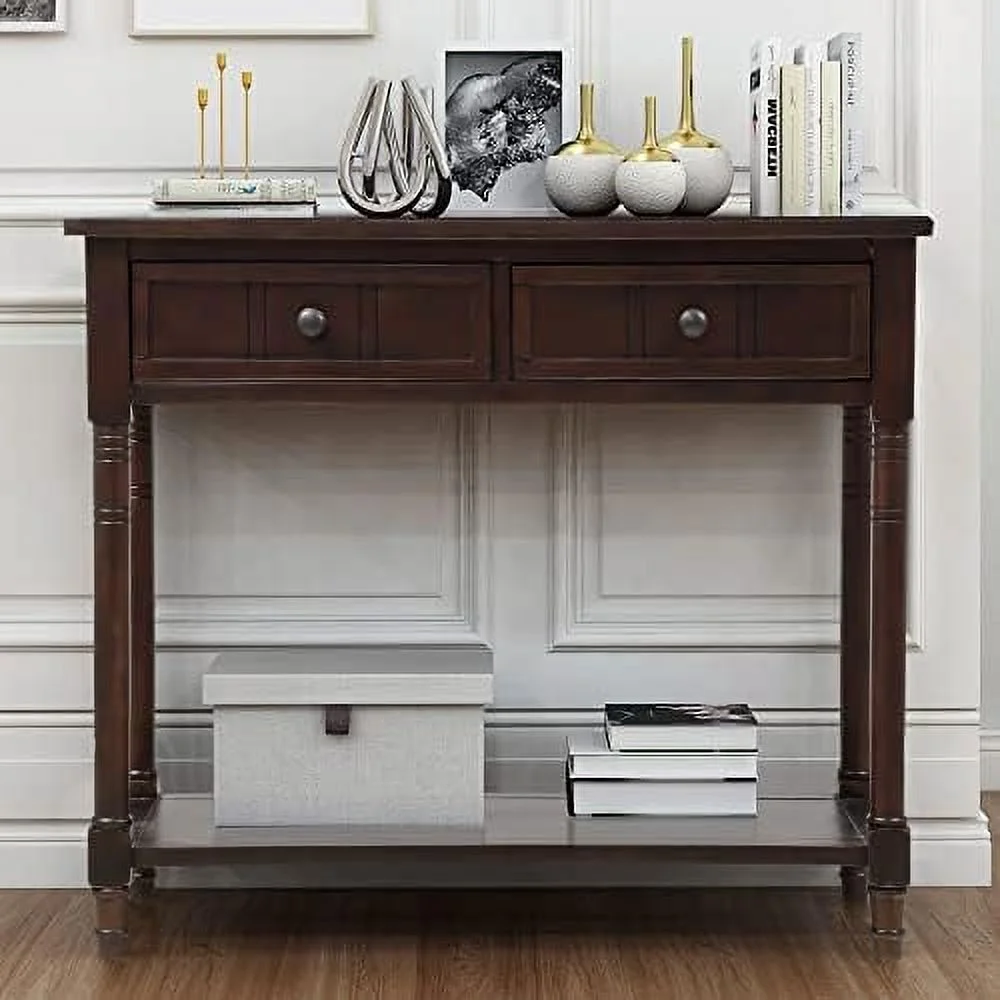 MQLIFEBOOM Wood Sofa Table Console Table Entryway Table Traditional Design with Two Drawers and Bottom for Living Room Hallway Dining Room Navy