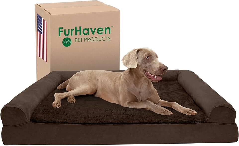 Furhaven Cooling Gel Dog Bed for Large Dogs w/ Removable Bolsters & Washable Cover, For Dogs Up to 125 lbs - Plush & Suede Sofa - Espresso, Jumbo Plus/XXL