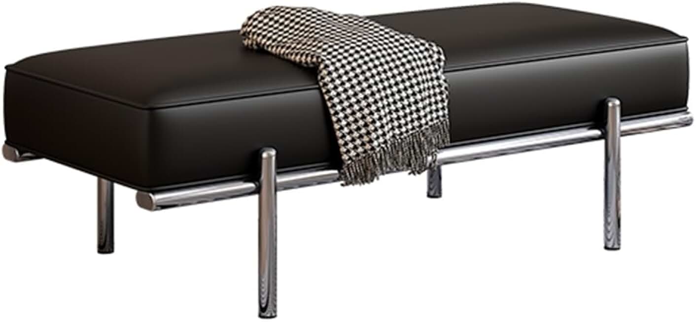 Bench Padded Entryway Bench, Modern Bedroom Bench, Faux Leather Ottoman, Leather Living Room Sofa Bench, for Living Room Bedroom Dinning Room Entryway(Black,17.7 * 17.5 * 15.8in)