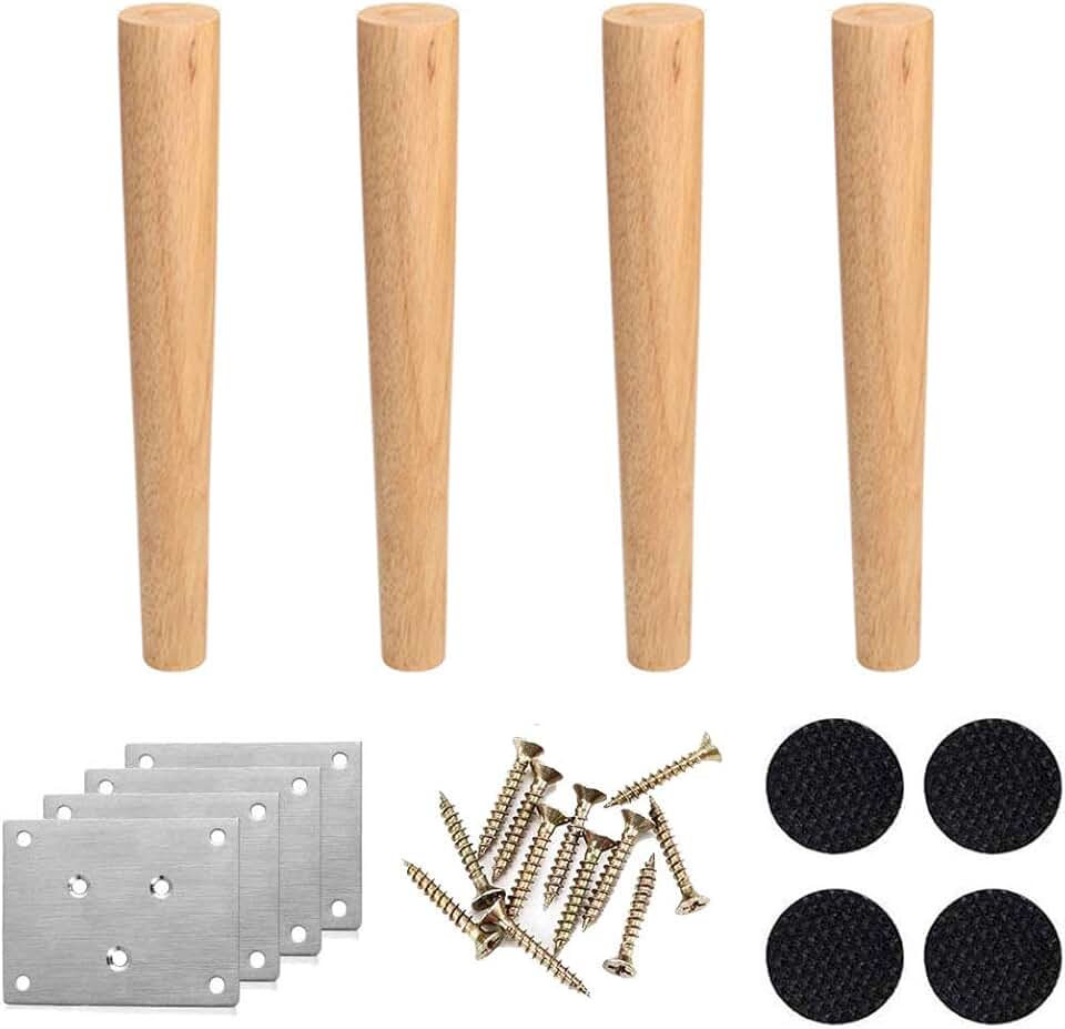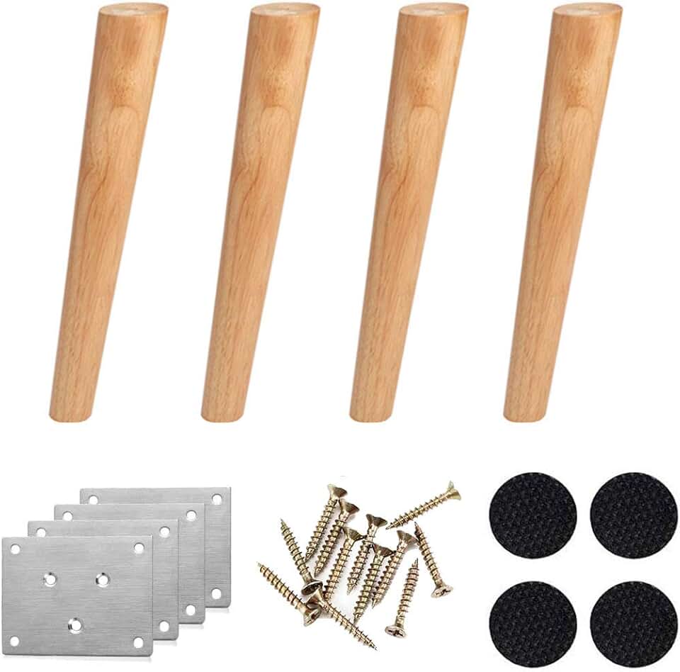 Stylish Simplicity Woodenniture Legs,Solid Wood Obliquetaperedniture Feet,Interchangeable Cabinet Feet Sofa Legs,for Couch Bed Armchair Cabinet, with Mounting Plate and Screws, 4 Pcs/60Cm/24In