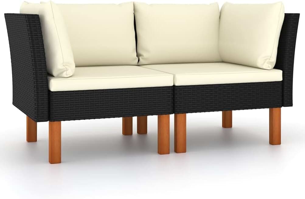 vidaXL Corner Sofas Set of 2 - Versatile Outdoor Furniture with Poly Rattan and Eucalyptus Wood Legs, Cream White Cushions, Lightweight and Modular Design, Easy Assembly