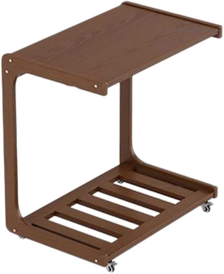 Solid Wood End Table with Rolling Wheels, C Shaped End Table for Sofa Couch and Bed, Wooden Side Table with Wheels, Sofa Table for Small Spaces, Living Room, Bedroom (80cm)