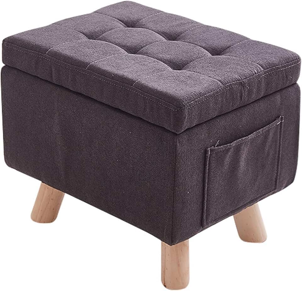 Rectangle Storage Ottoman Footstool with Hinged Lid,Stackable Sofa Chest Footrest with Pocket,Portable Cotton and Linen Ottoman for Living Room Bedroom-Navy blue40*34cm