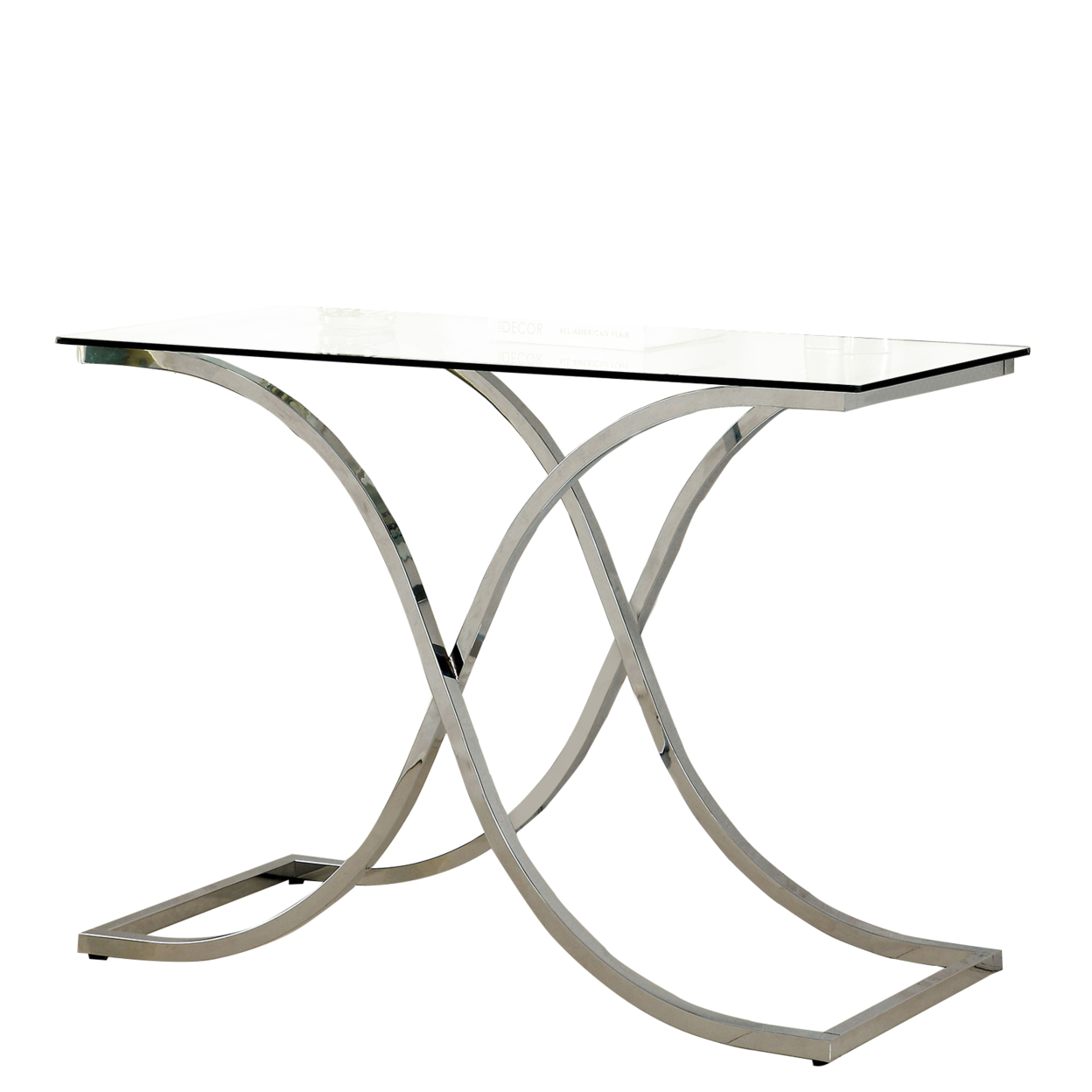 Modern Sofa Table with Glass Top and Curved Chrome Legs, Silver and Clear- Saltoro Sherpi