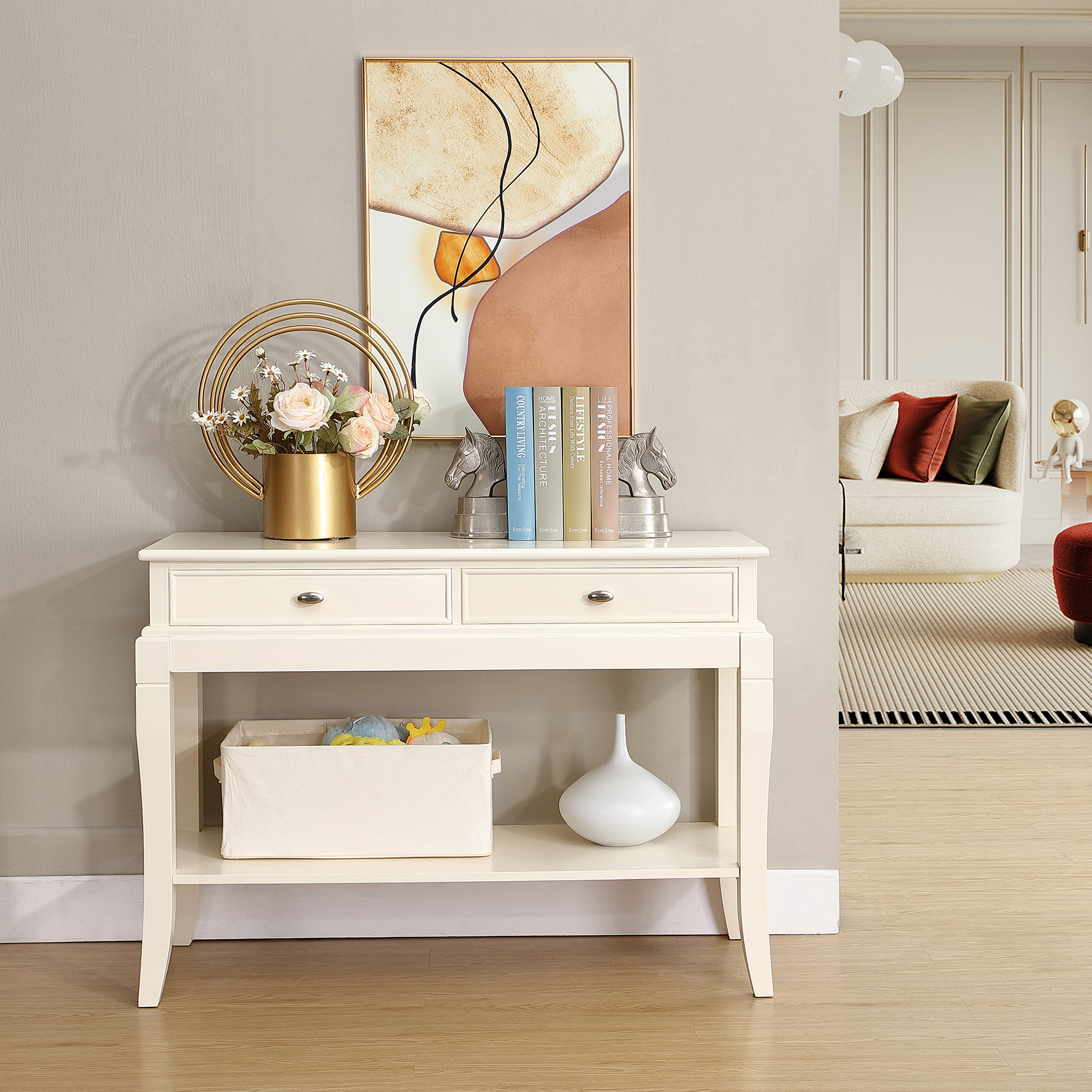 41.7 Inch Solid Wood Mid-Century Modern Console Table,Sofa Table, Entryway Table with Storage Drawers for Living Room, Hallway