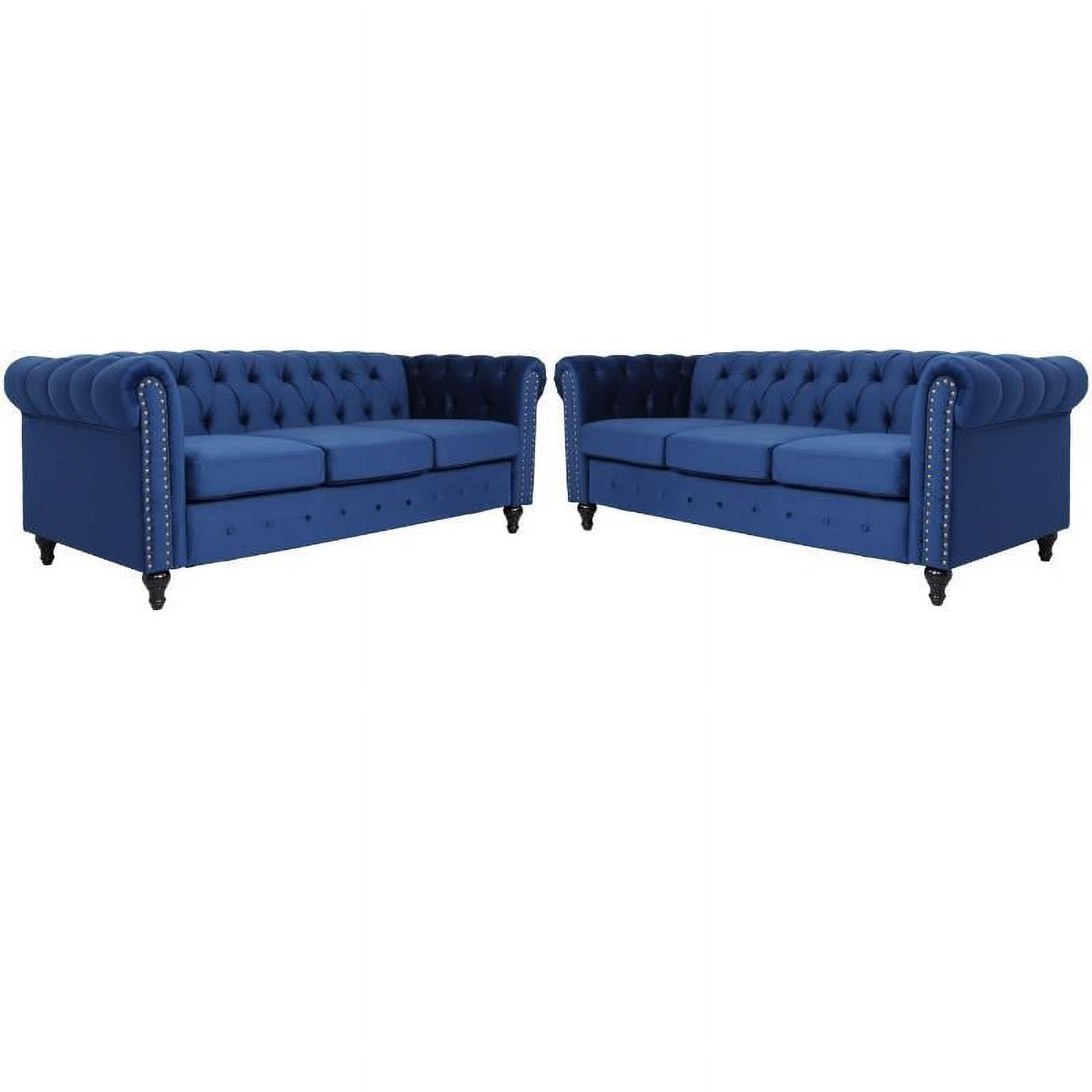 Home Square 2 Piece Modern Velvet Living Room Sofa Set in Blue