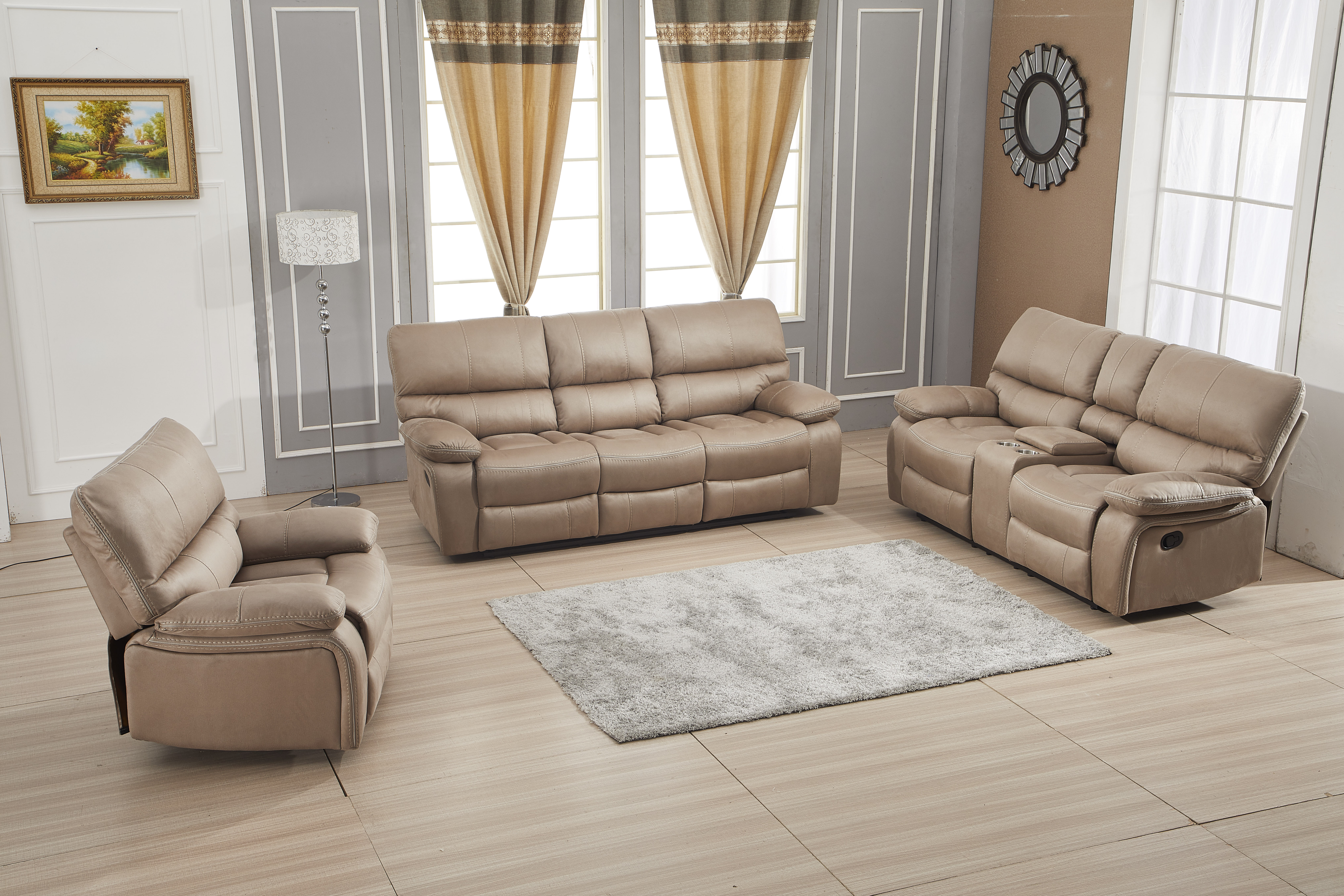 Betsy Furniture Microfiber Reclining Sofa Couch Set Living Room Set 8007 (Taupe, Sofa+Loveseat+Recliner)